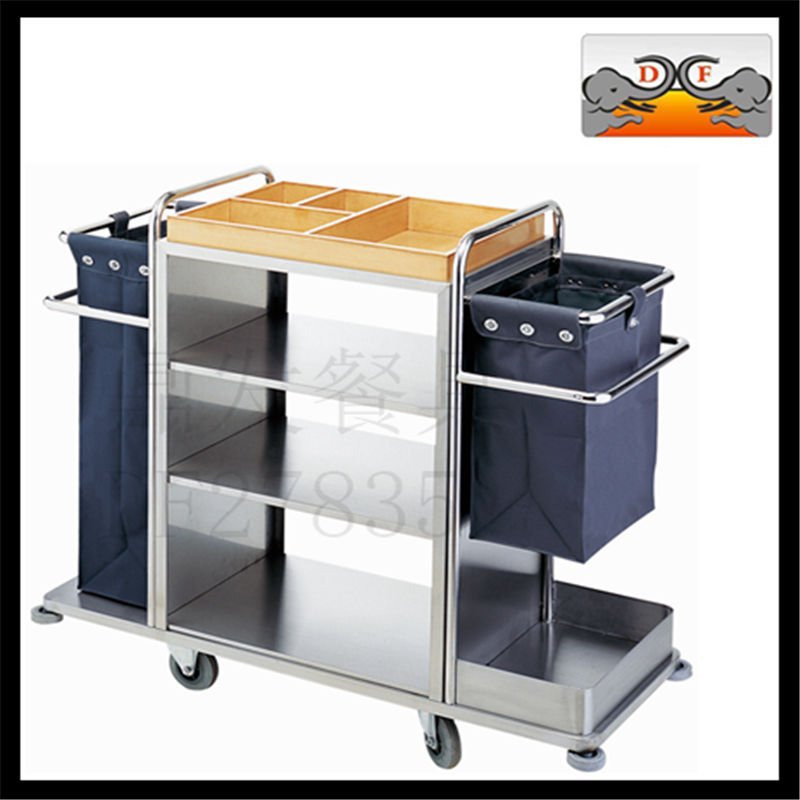 DF27835鼎发不锈钢厨房酒店用品餐具双通客房服务车打扫车