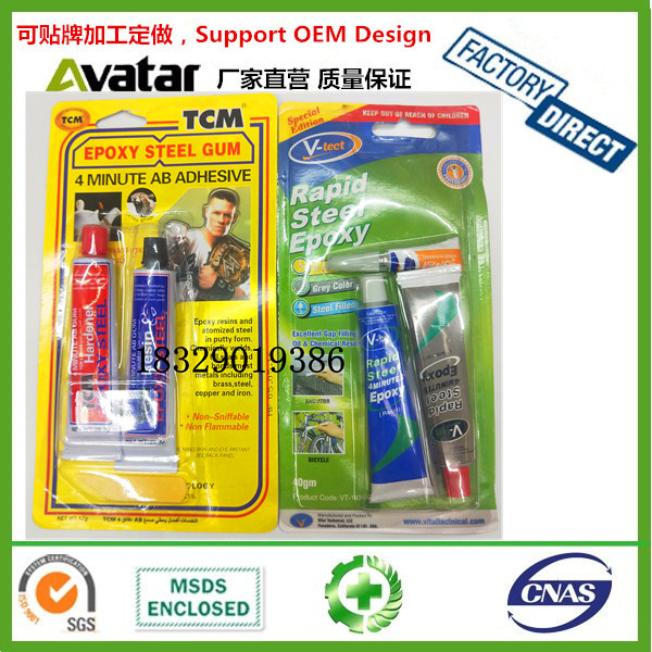 V-TECT双泡壳强力透明粘金属木材AB胶水 带502高粘度AB胶批发