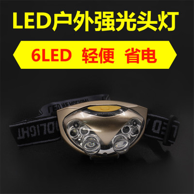 外贸专供新款AAA电池6LED猫脸途步骑行户外钩鱼 塑料 发光头戴灯