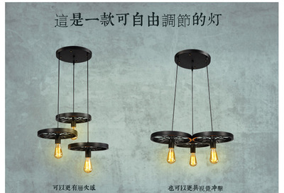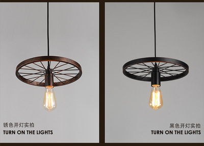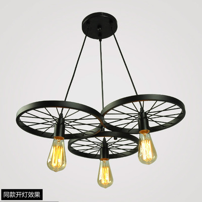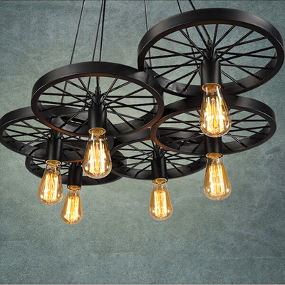 外贸专供loft个性客厅吧台吊灯具仿古工业风铁艺车轮吊灯