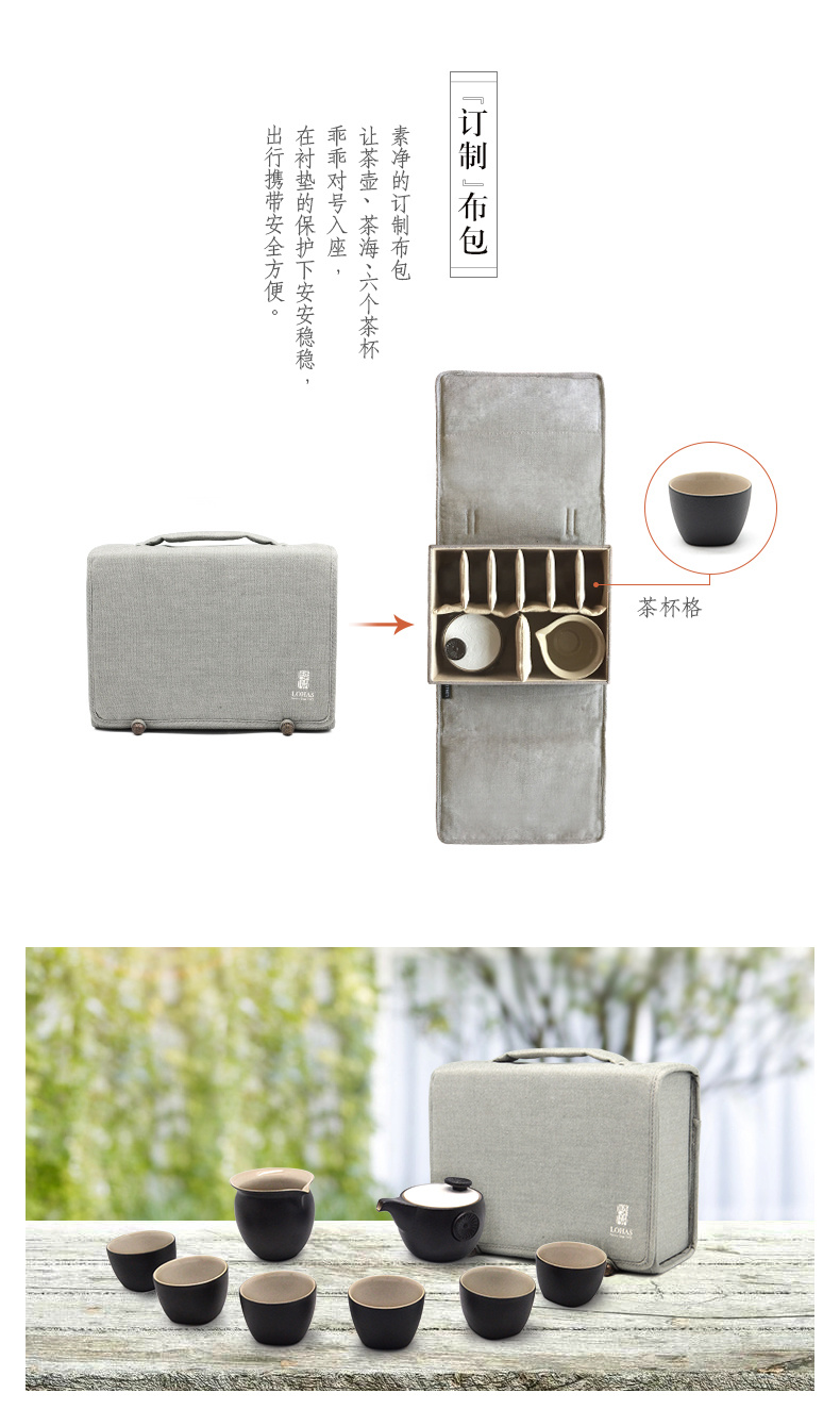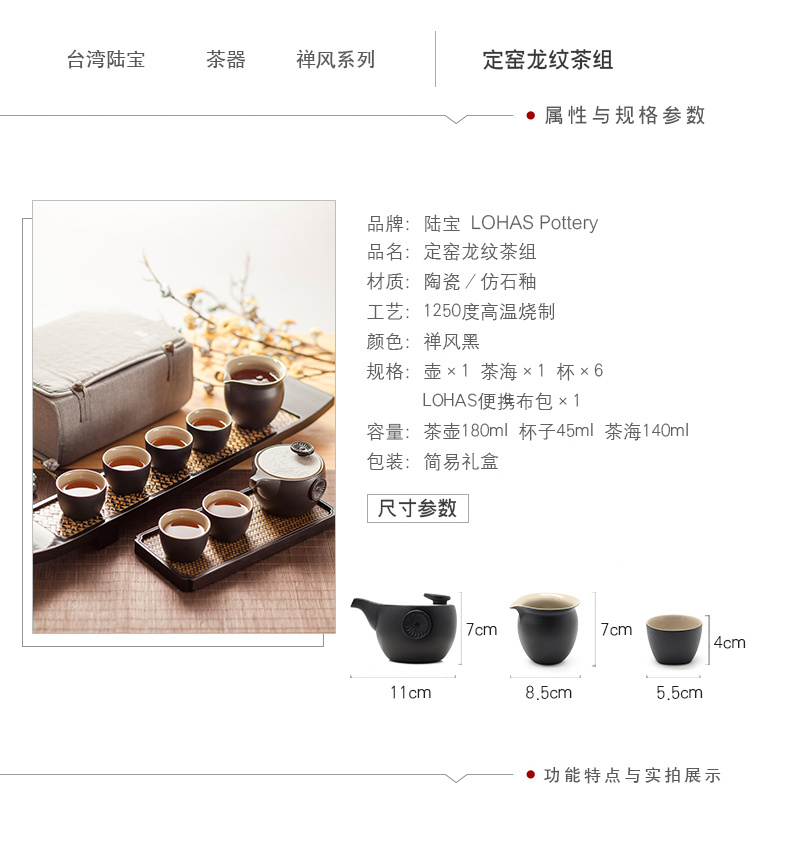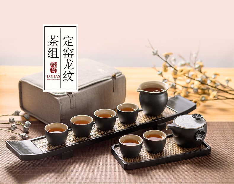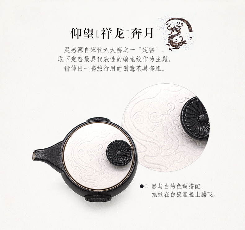 陆宝陶瓷茶具定窑龙纹茶组家用客厅中式茶具功夫套组便携装配布袋