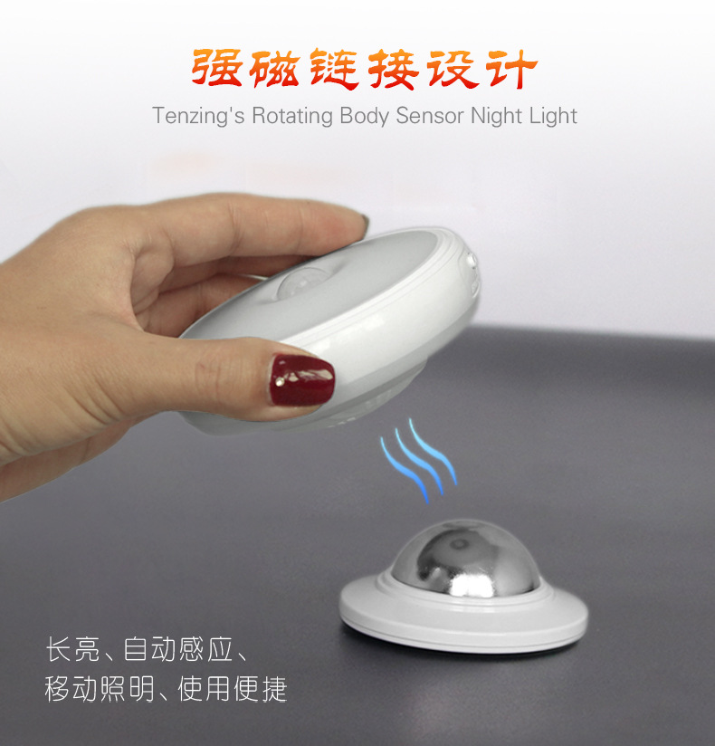 外贸专供360度旋转无死角卧室走廊充电LED人体感应小夜灯