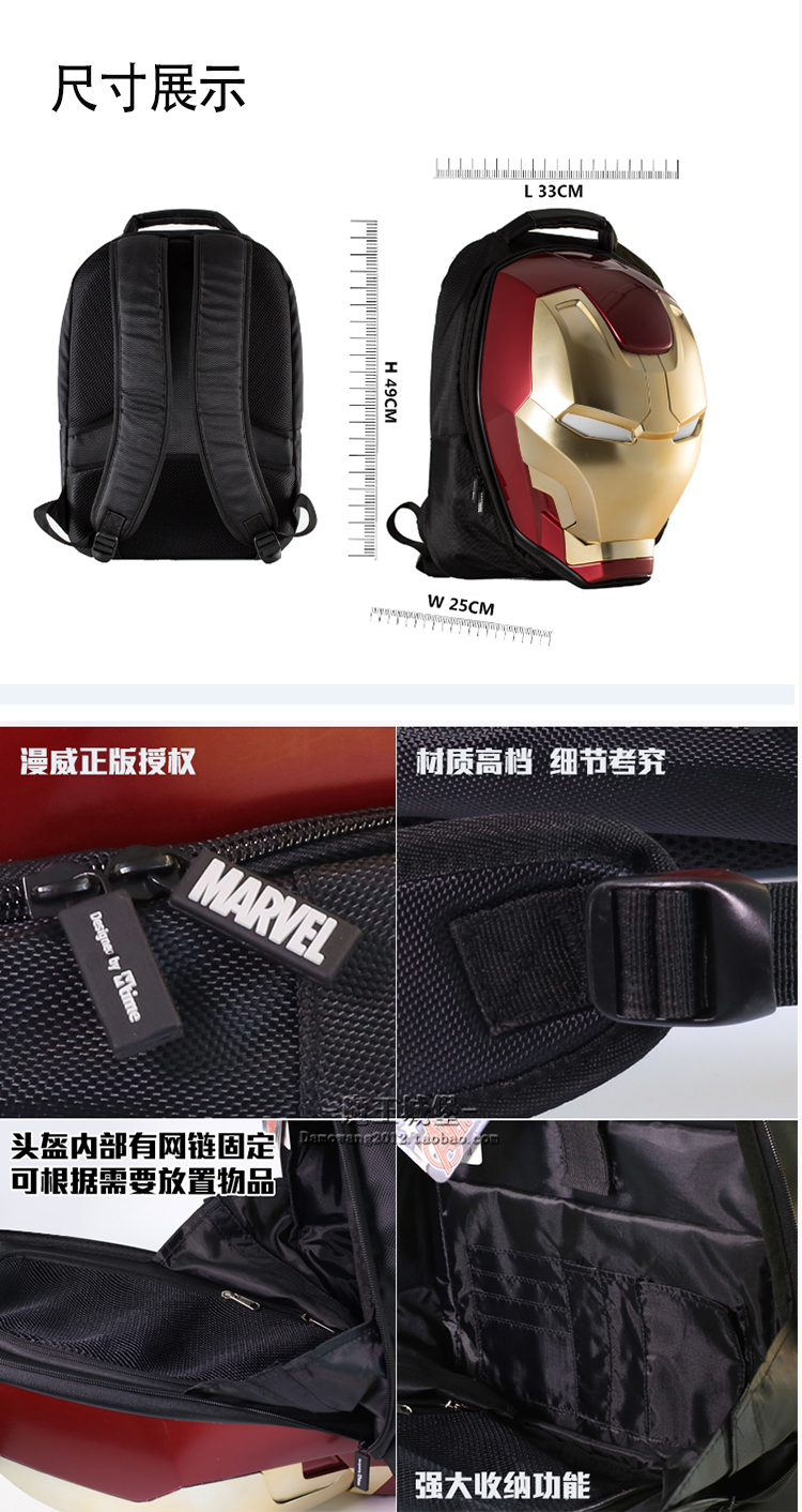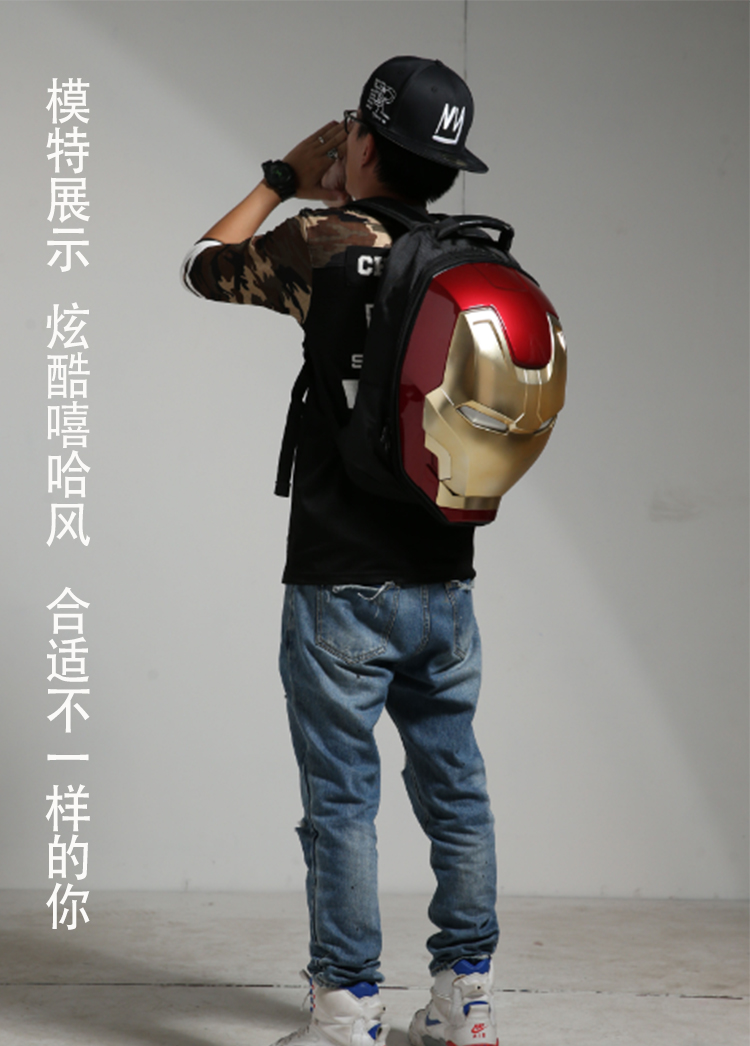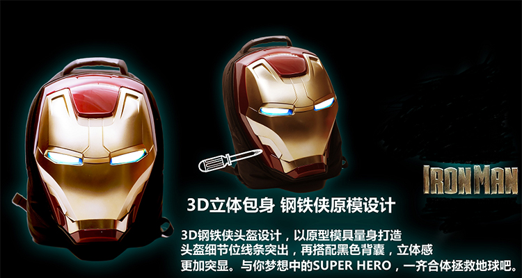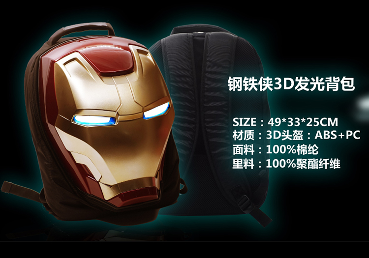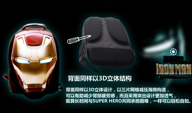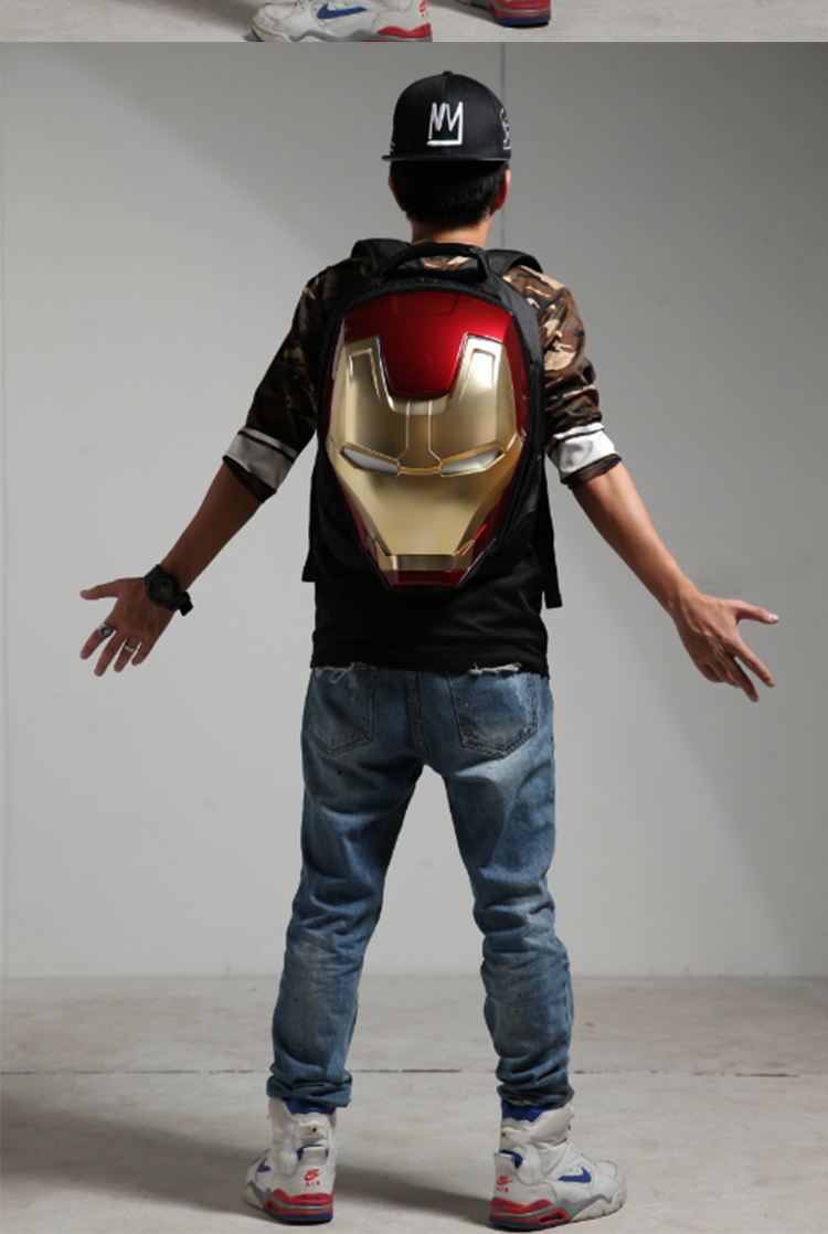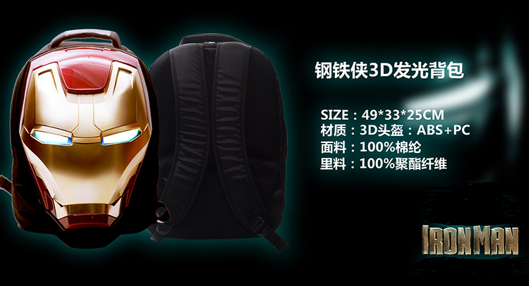 钢铁侠男士背包时尚潮流双肩包男休闲帆布旅行包韩版大学生书包