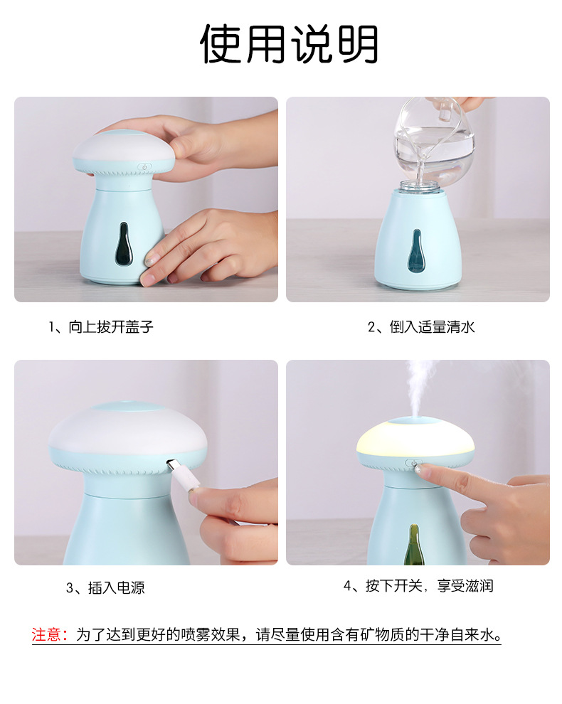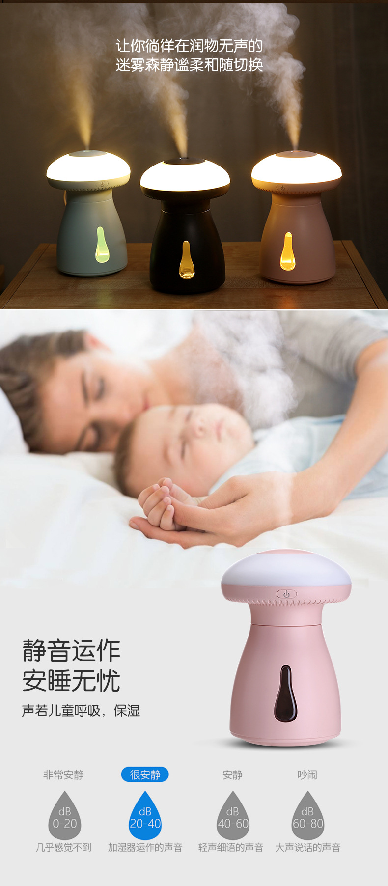 新款萌菇加湿器USB迷你车载卧室静音空气净化补水保湿夜灯加湿器