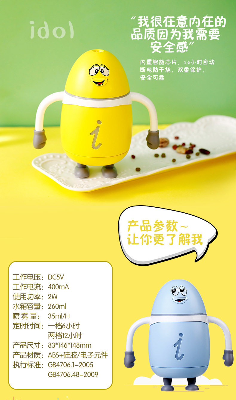 爱豆加湿器 创意迷你USB加湿器 母婴室内空气防干燥加湿器