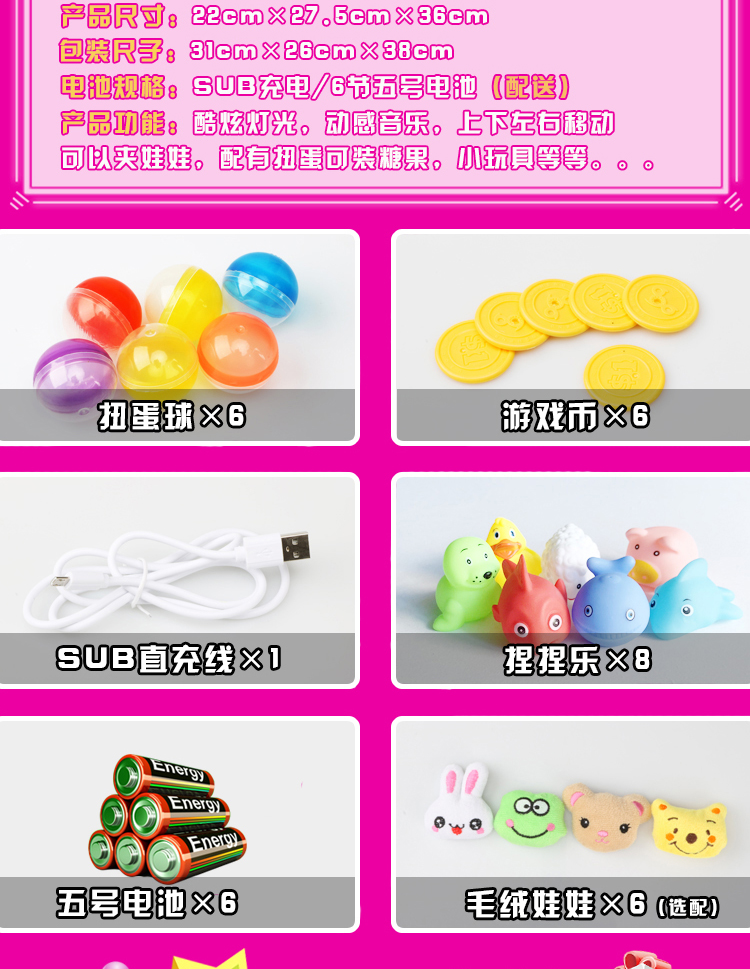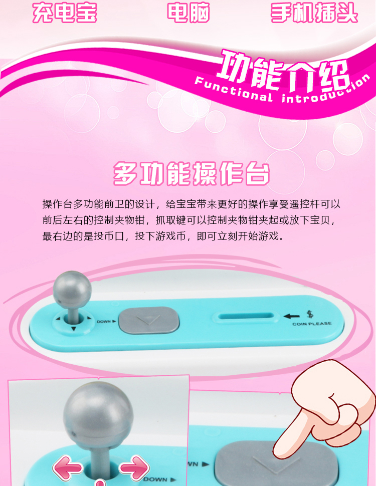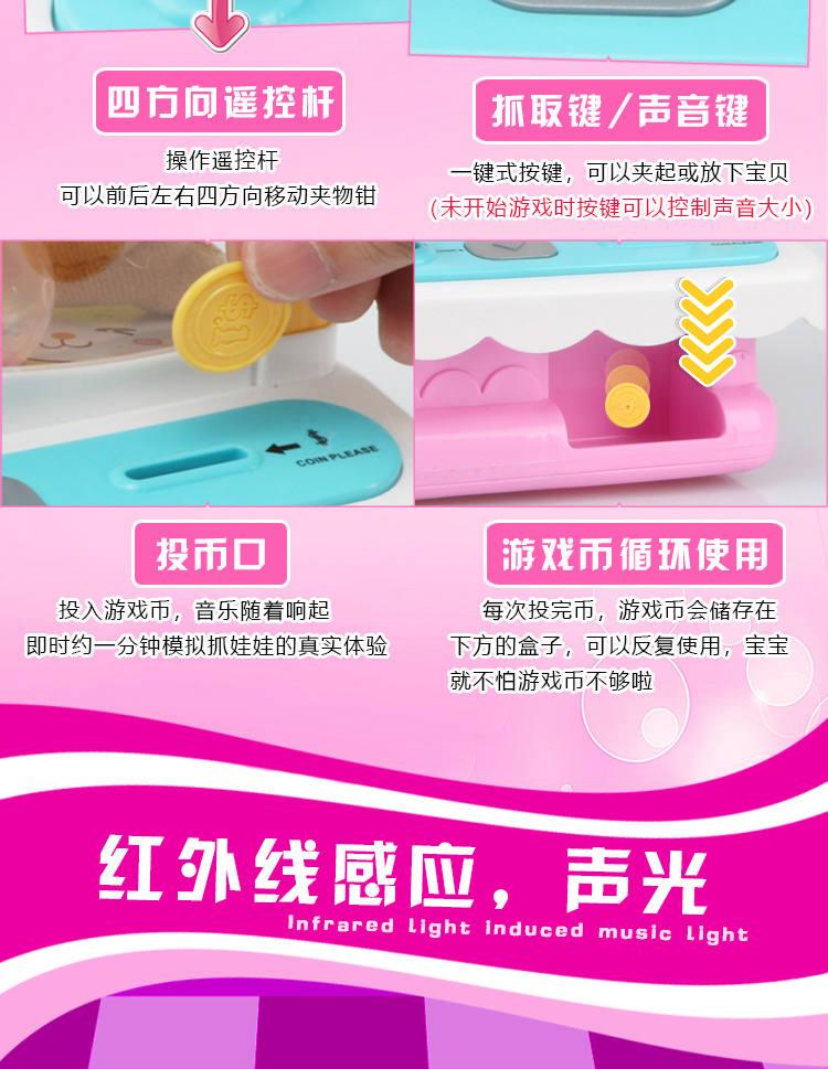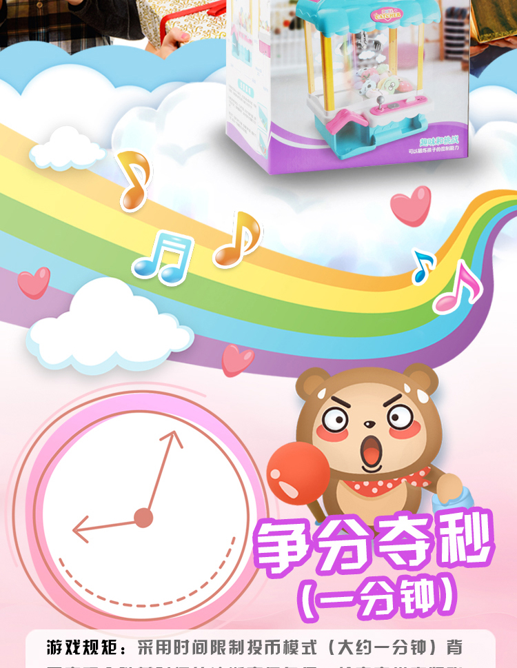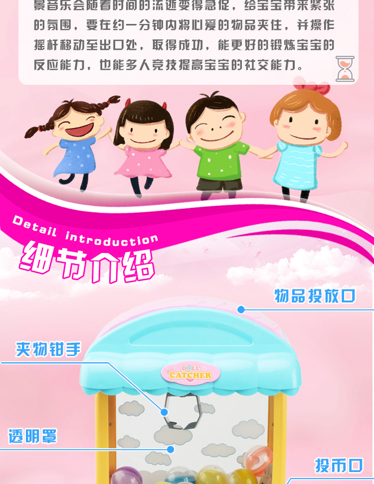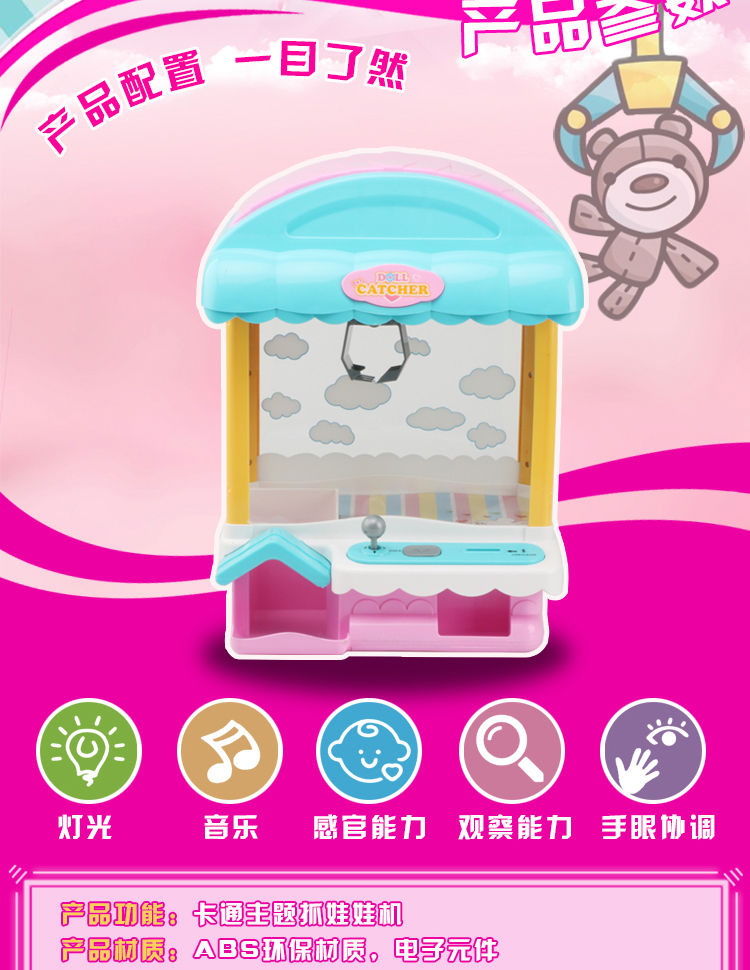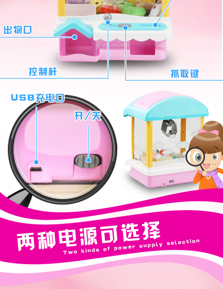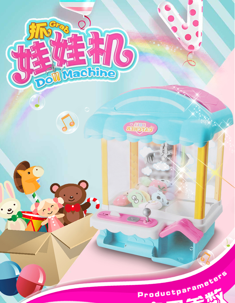 儿童抓娃娃机玩具迷你家用夹公仔游戏机小型充电动投币扭蛋糖果机