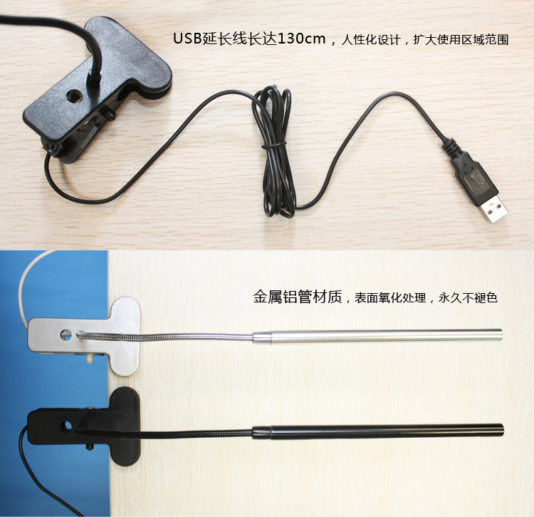 USB夹子护眼灯 触摸控制灯光,带无极调光功能,精美设计金属灯头和金属软管,360度可弯,10个高亮LED,无频闪、护眼、节能等优点!源头工厂,量大更优!