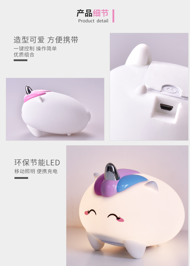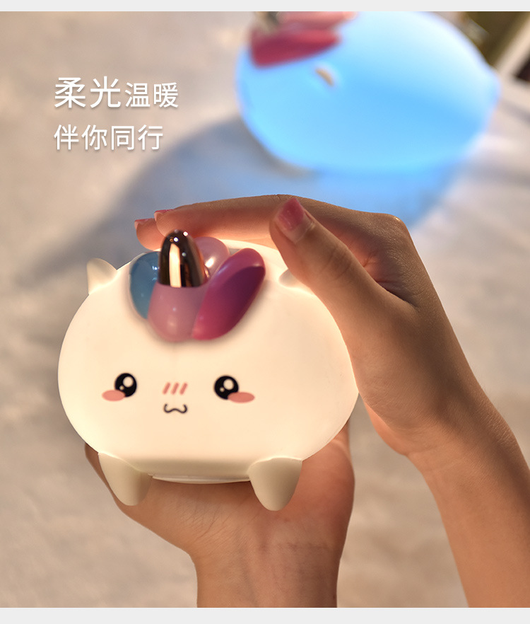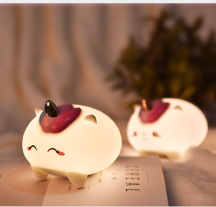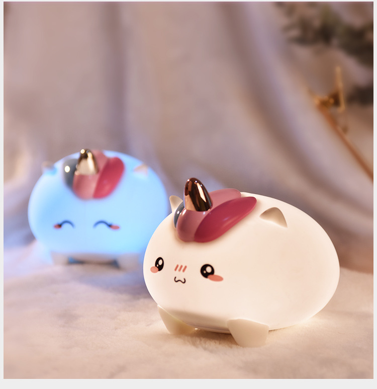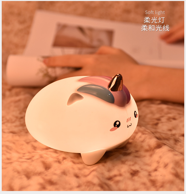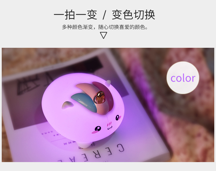创意小怪兽硅胶小夜灯USB充电可爱萌物拍拍灯卧室独角兽床头台灯