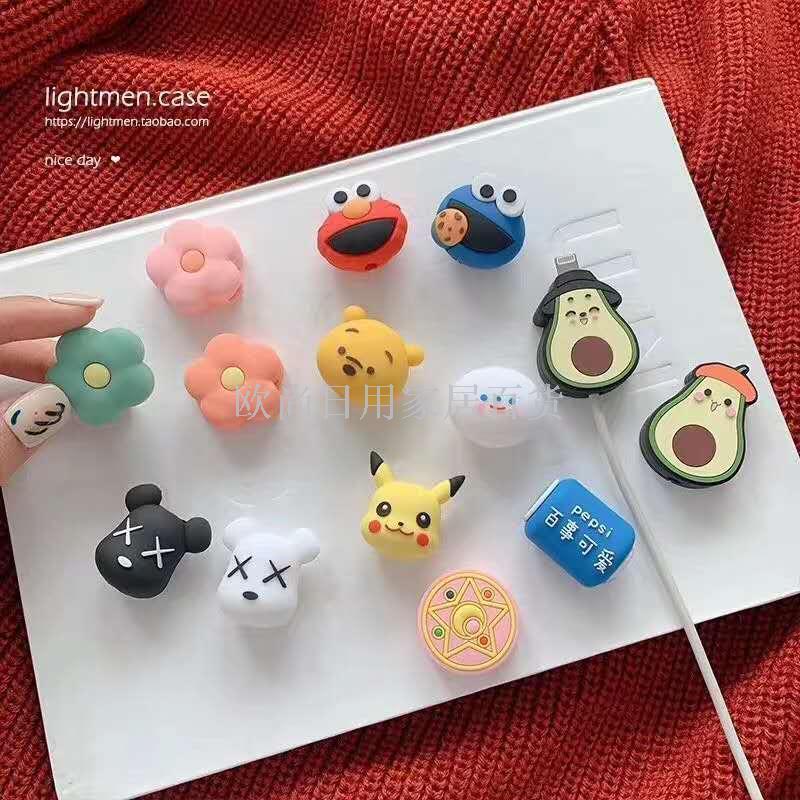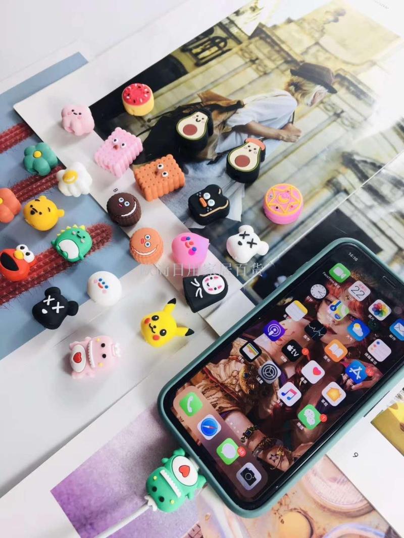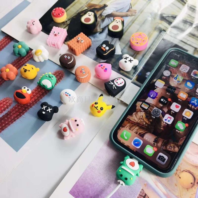 咬一口充电线保护头 仿断数据线饰品动物造型数据线保护套