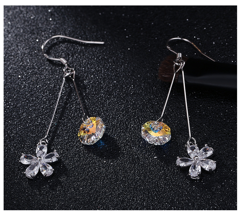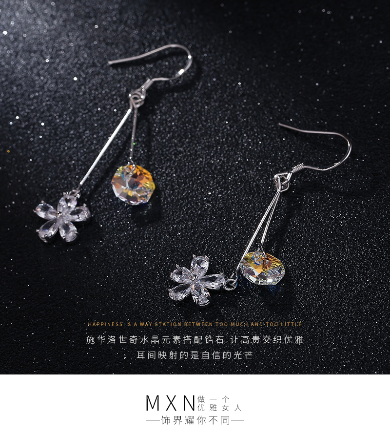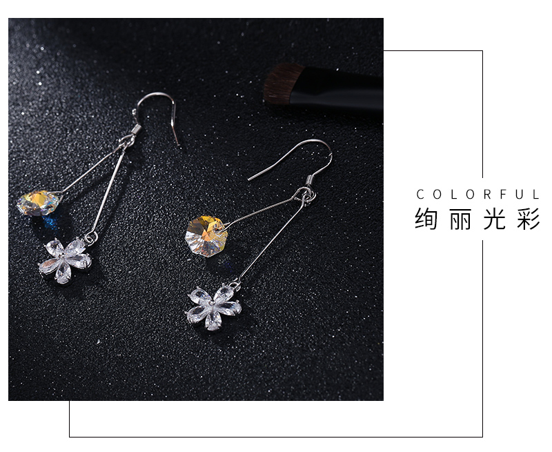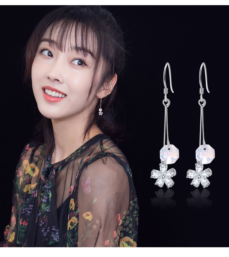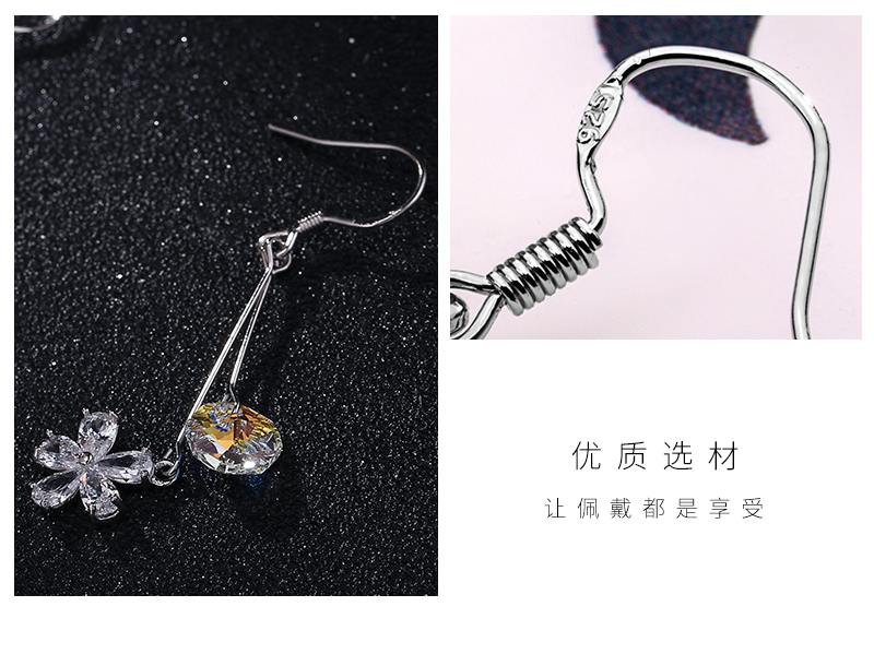 925银钩防过敏气质锆石花朵进口水晶时尚百搭耳环厂家直销批发