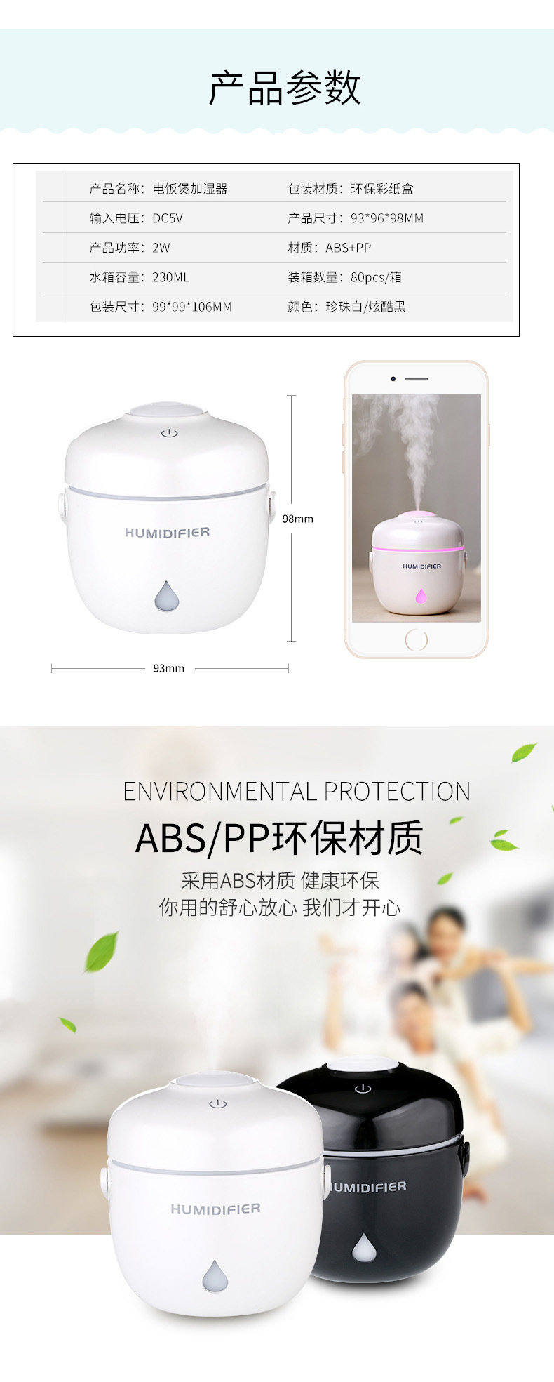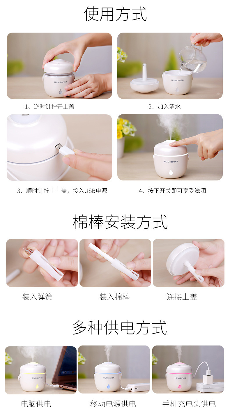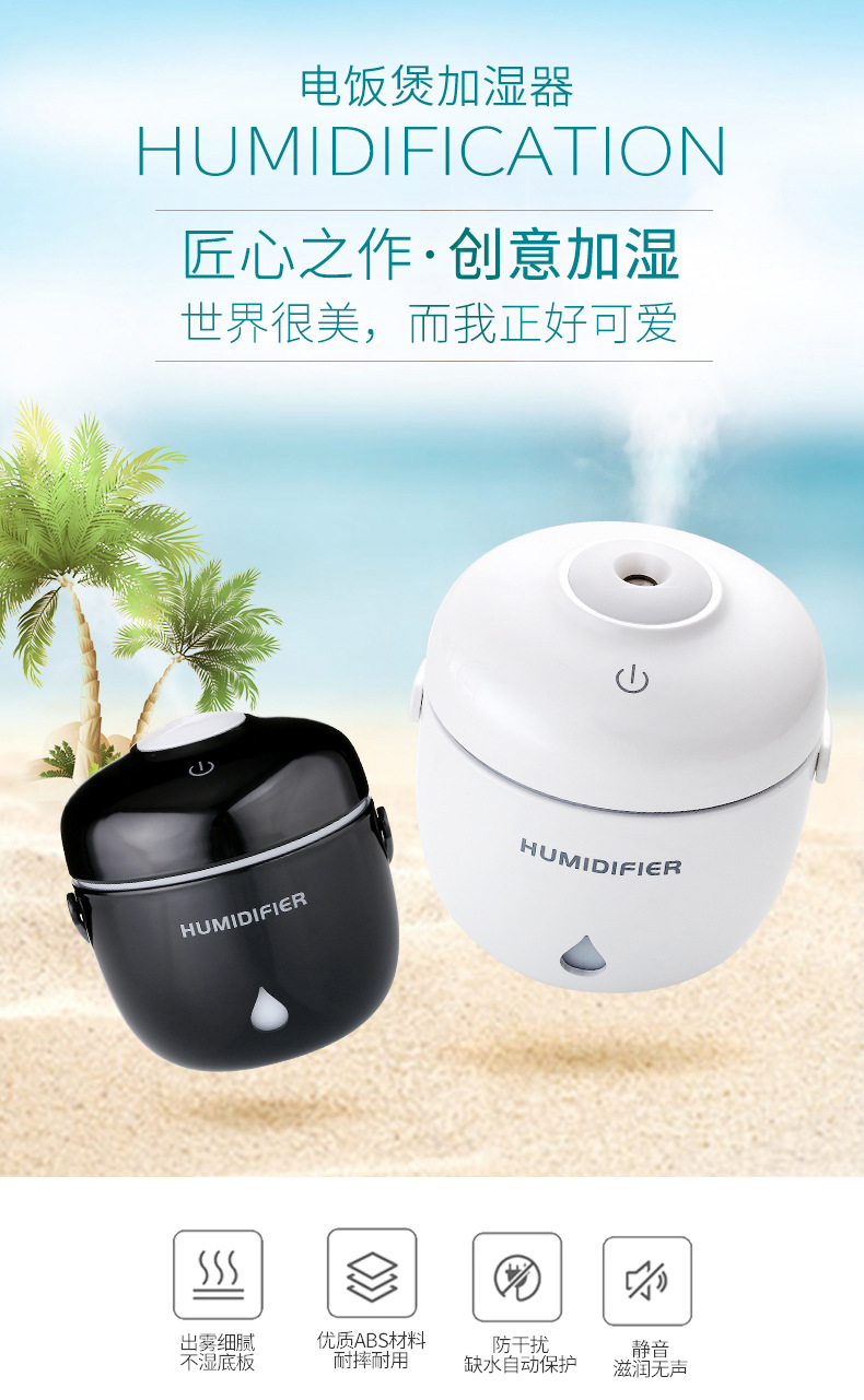 外贸专供智能定时电饭煲静音超声波家用迷你新品创意usb加湿器