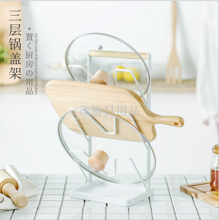 免打孔坐式砧板菜板架铁艺三层锅盖架收纳沥水架厨房置物收纳简约
