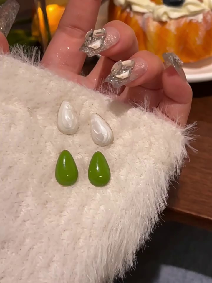S925银针轻奢小众牛油果耳环耳饰品批发韩国新款滴釉水滴形耳钉女