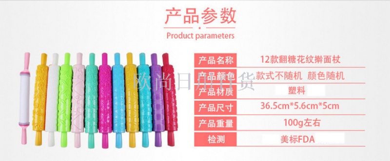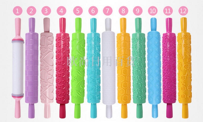 多功能家庭DIY蛋糕烘焙工具塑料压花印花翻糖花纹擀面杖
