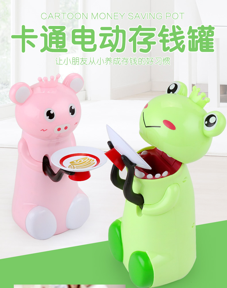 跨境新款无脸男卡通动物存钱罐 电动音乐吃钱储钱罐 儿童礼品
