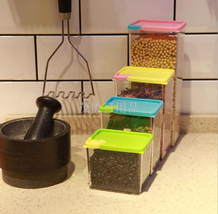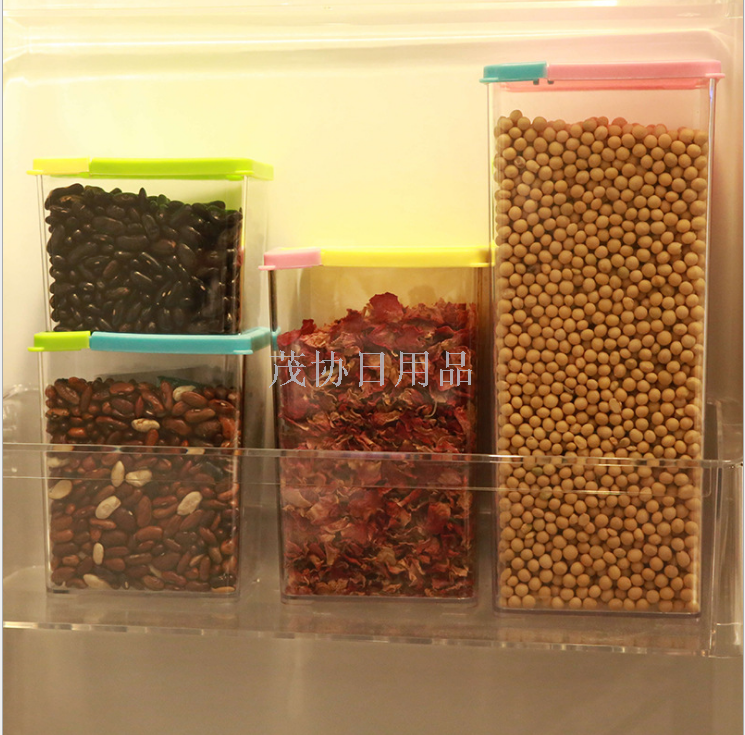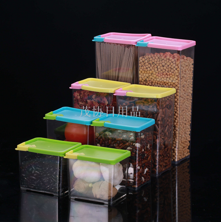 产品名称:厨房密封罐收纳盒 五谷杂粮塑料有盖储物罐 多彩食品收纳罐