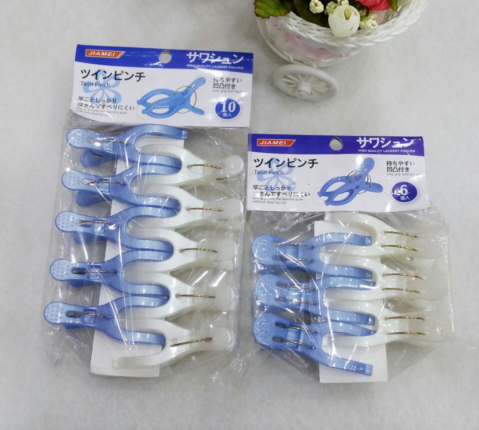 现货实用百货新多功能衣袜内裤夹子(6个庄)纯色强力塑料晒衣夹