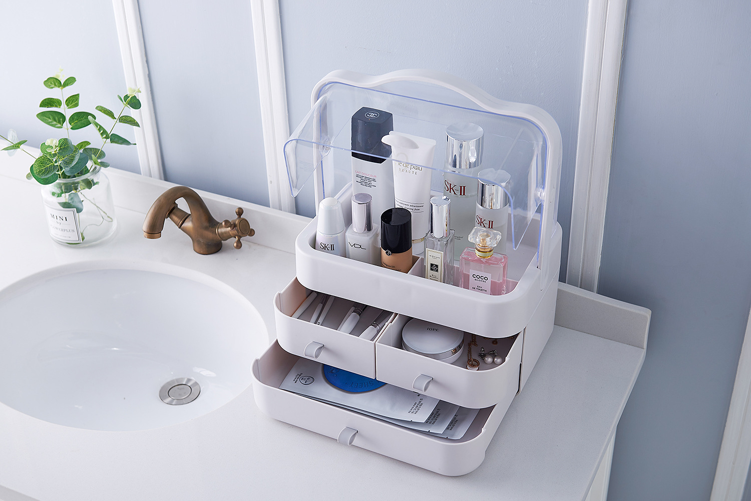 多功能大容量手提化妆品收纳盒塑料防尘桌面抽屉式梳妆台置物架