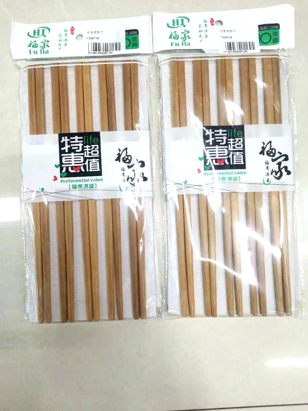 福家黑筷子家用中式竹筷子10双装家庭装带竹筷子批量采购