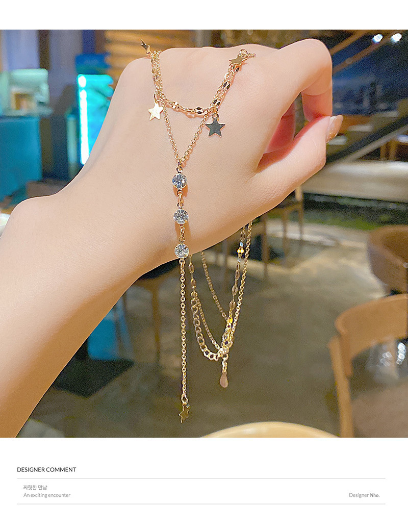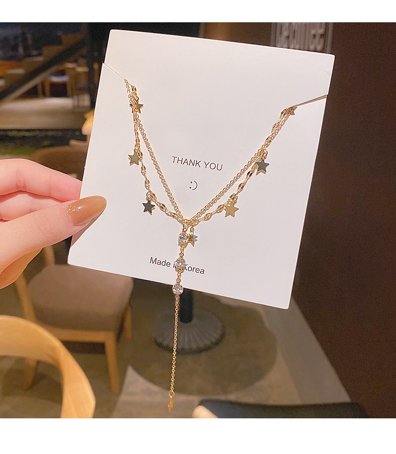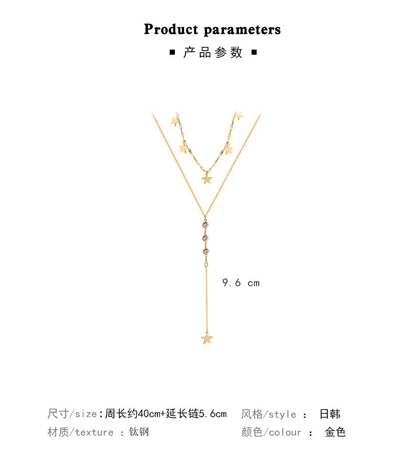 饰品钛钢双层五角星锆石流苏项链女潮网红ins小众设计感锁骨链