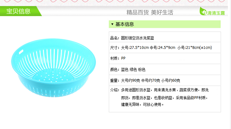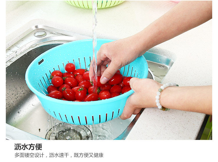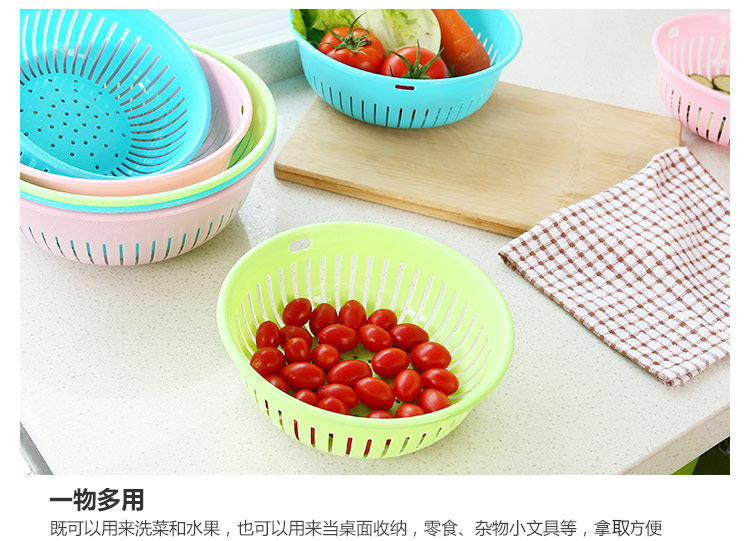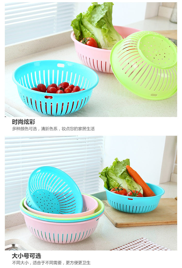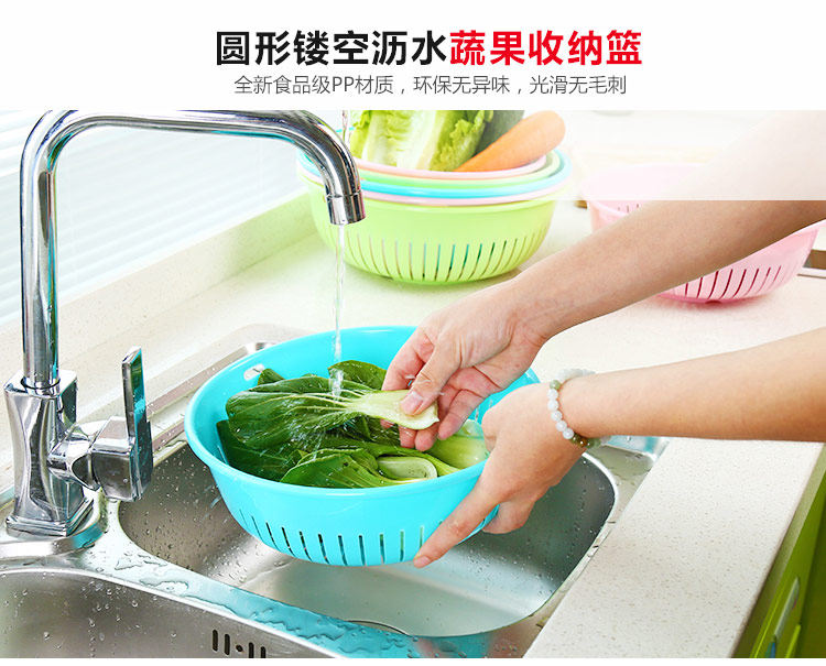 A2-69厨房洗菜盆圆形镂空沥水洗菜篮 塑料篮子水果篮蔬果沥水篮收