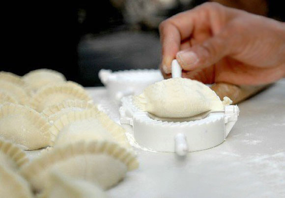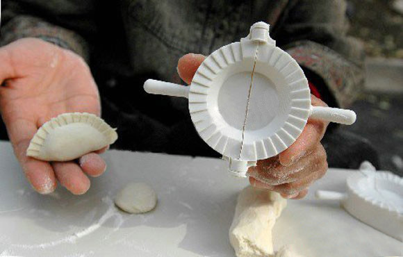 特别注意:直径14厘米的饺子模是平底的,是没有带福字的哦