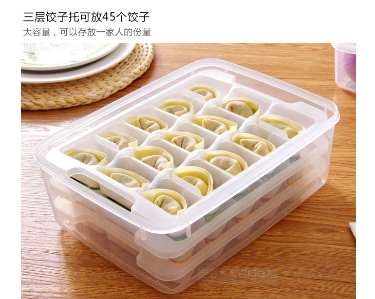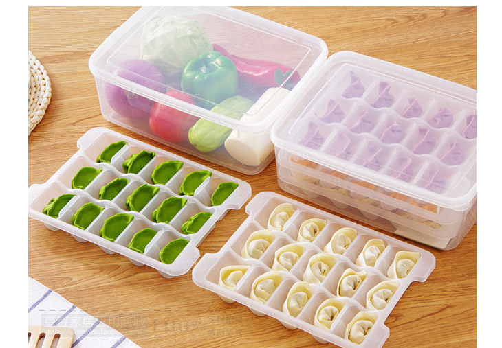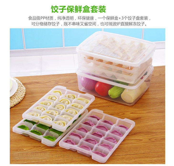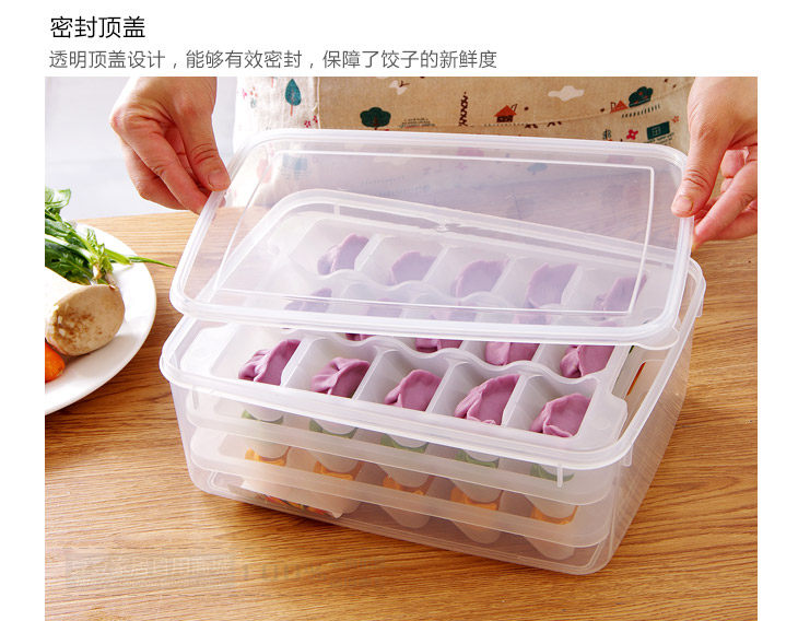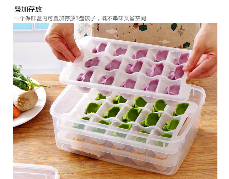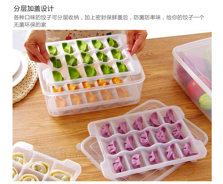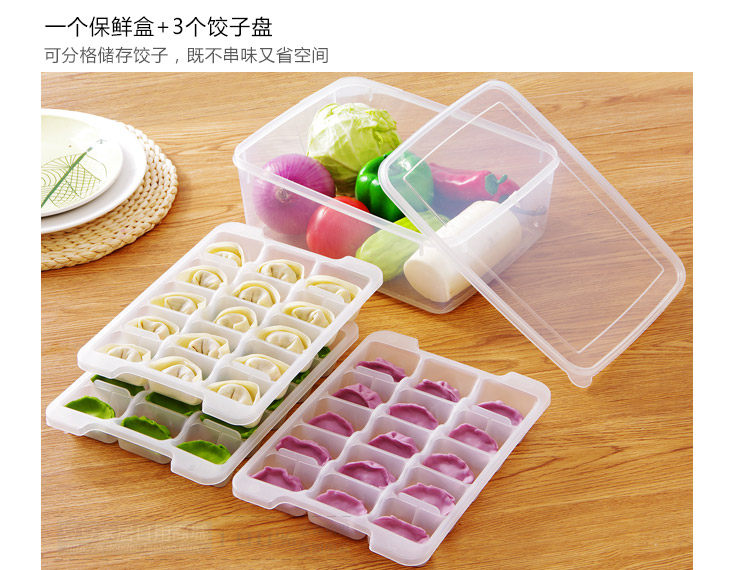 不粘底冷冻馄饨饺子盒冰箱保鲜盒收纳盒可微波解冻盒分格饺子托盘