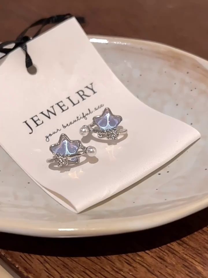 S925银针小清新百搭气质珍珠耳环耳饰轻奢小众蓝色锆石星星耳钉女