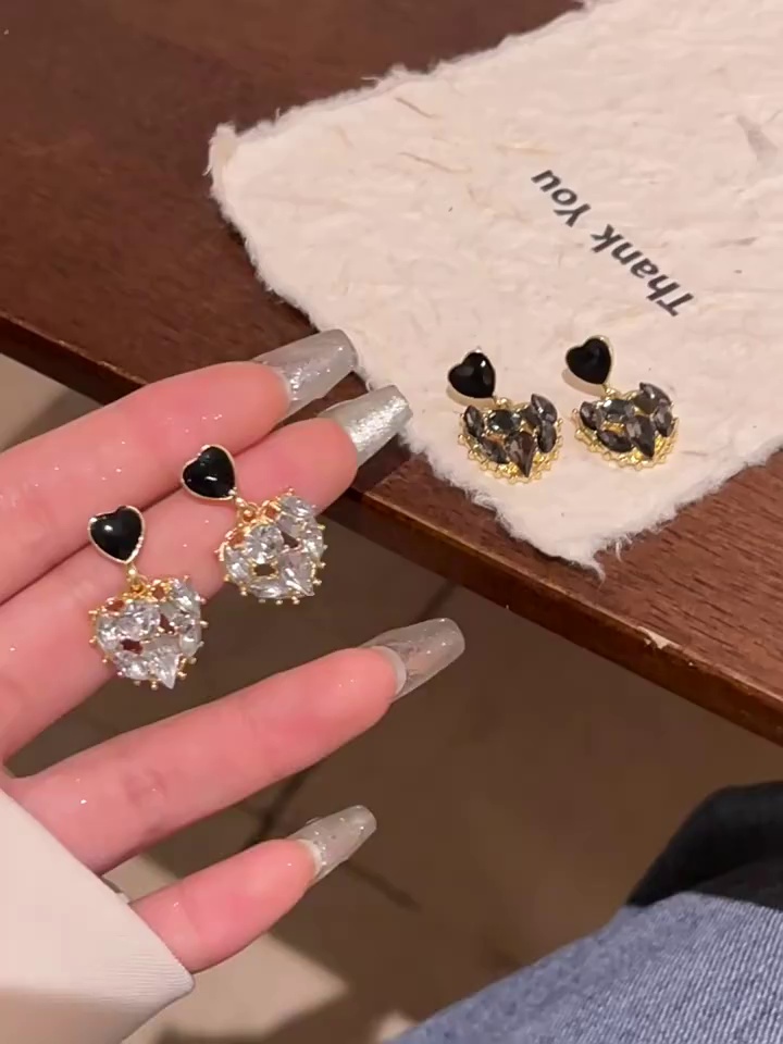 925银针ins潮百搭气质桃心耳钉耳饰小众高级感精致爱心锆石耳环女