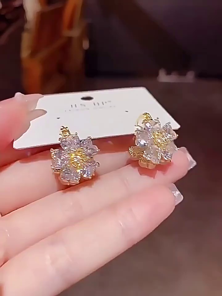轻奢双面猫眼石耳钉耳扣批发小众两戴锆石花朵耳环高级设计感精致