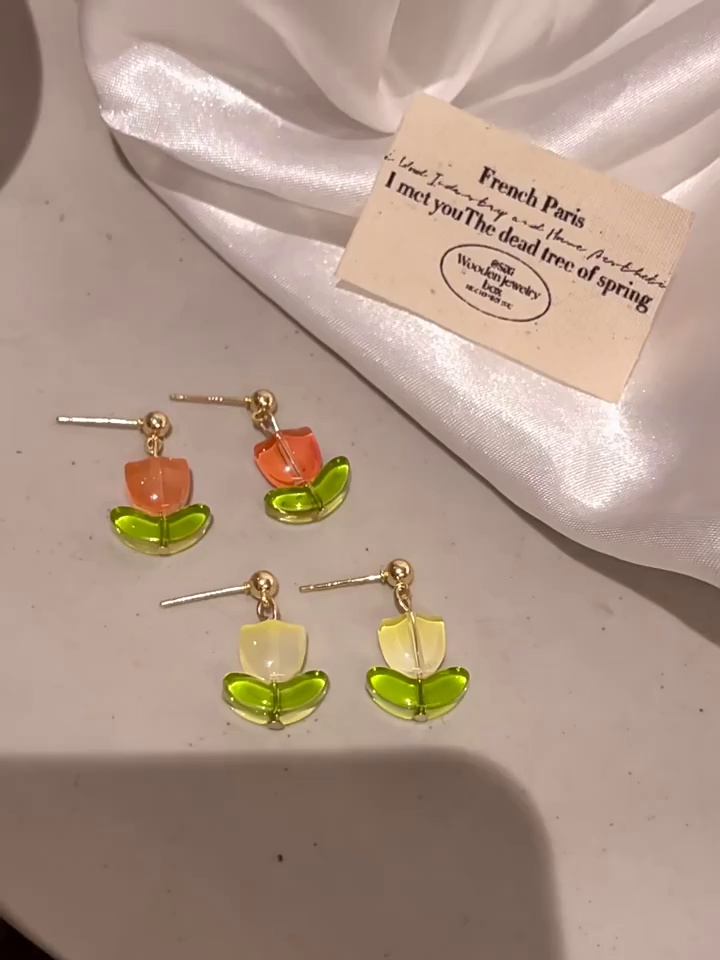 S925银针轻奢小众百搭气质玫瑰花耳钉耳饰品森系郁金香花朵耳环女
