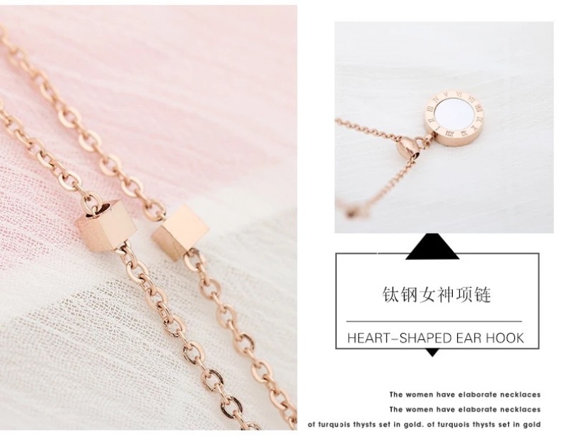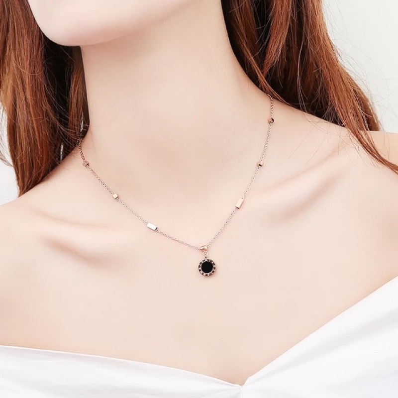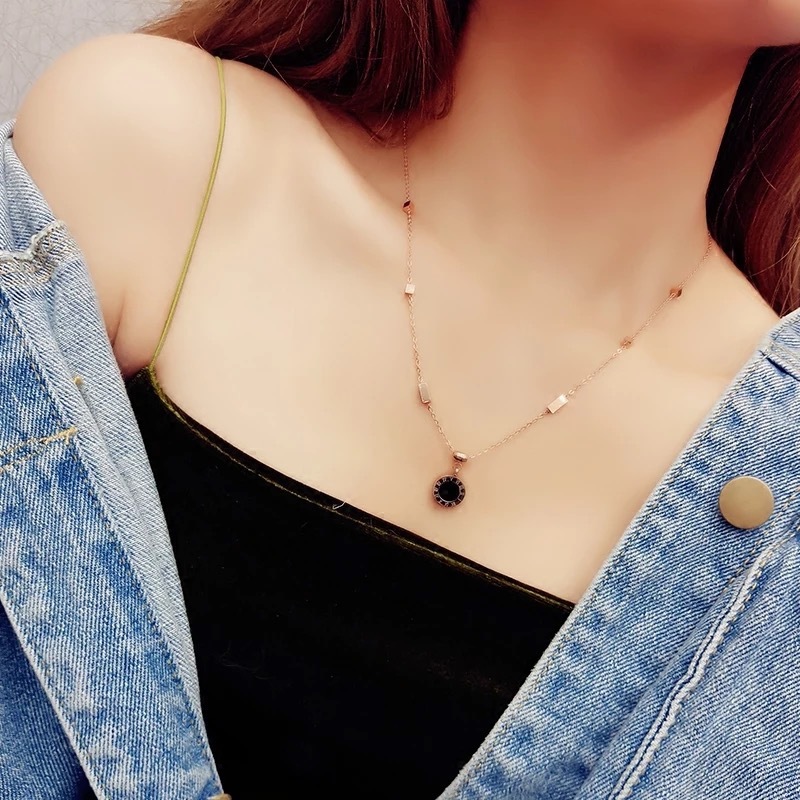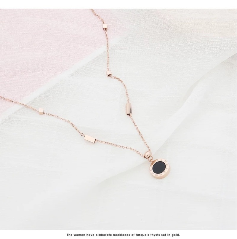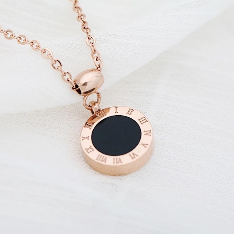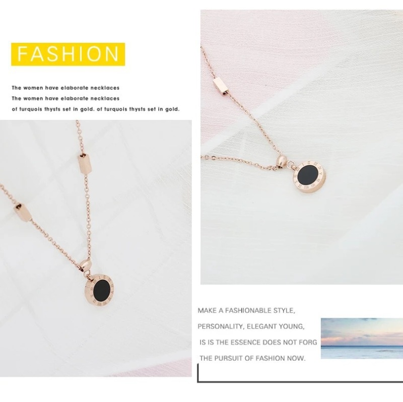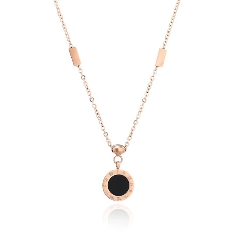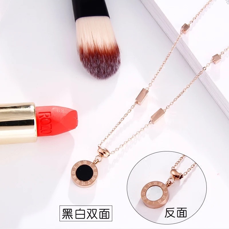 jewelry japanese and korean rose gold black and white double-sided roman numerals pendant decorative necklace clavicle chain titanium steel accessories female