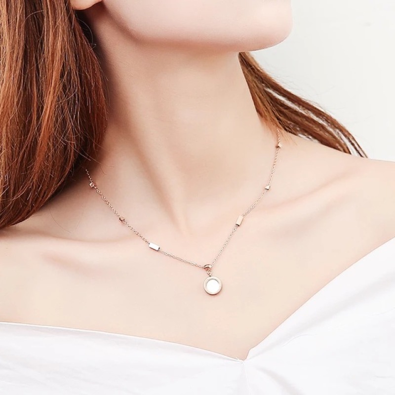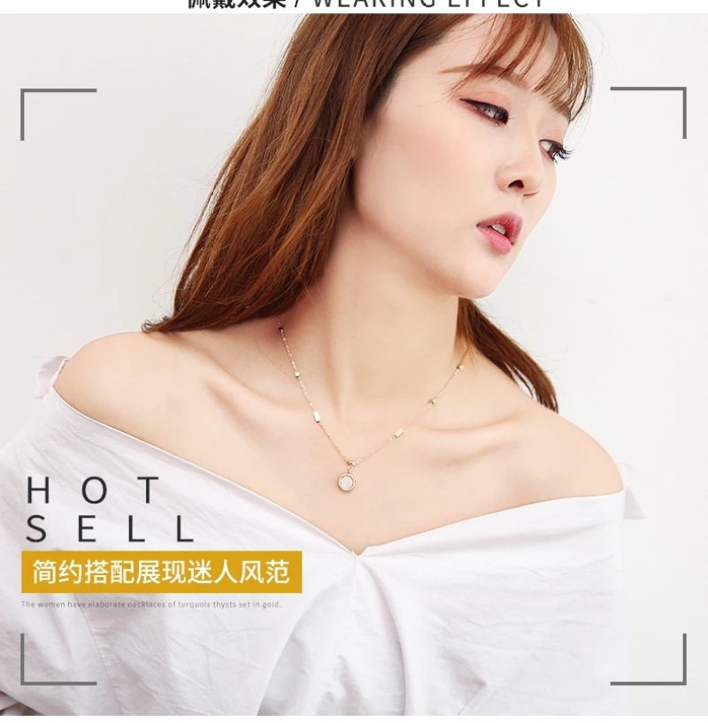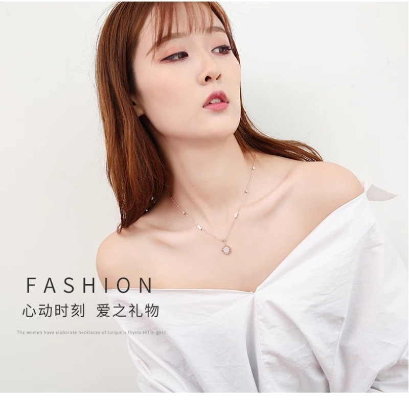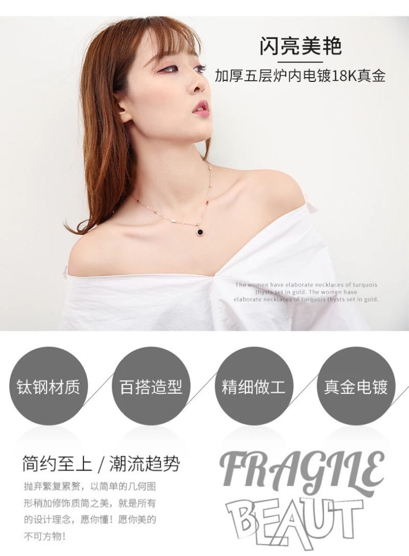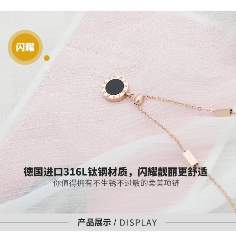 饰品日韩玫瑰金黑白双面罗马数字吊坠装饰项链锁骨链钛钢配饰女