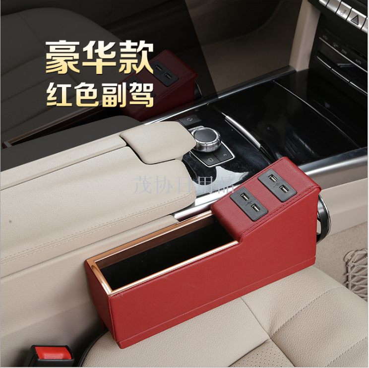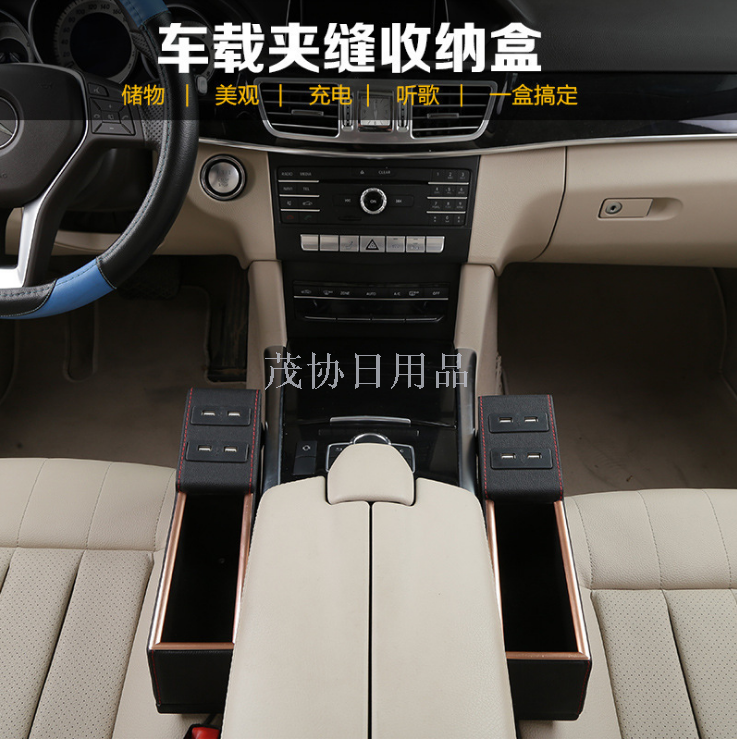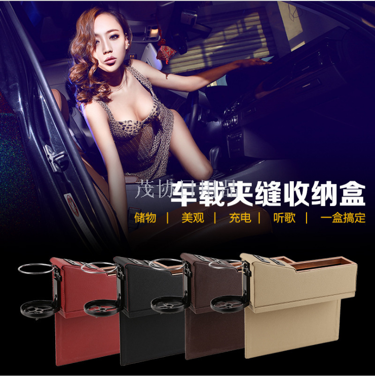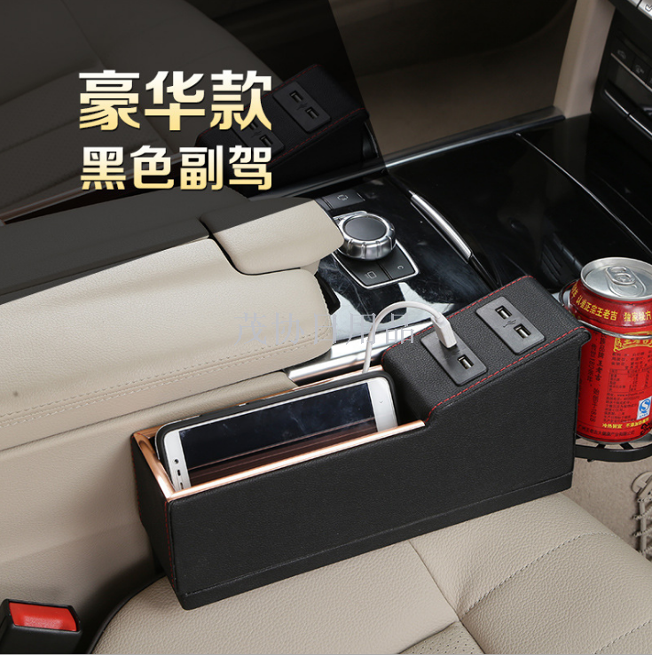 汽车收纳盒座椅夹缝储物盒带USB充电多功能水杯架缝隙车载置物盒