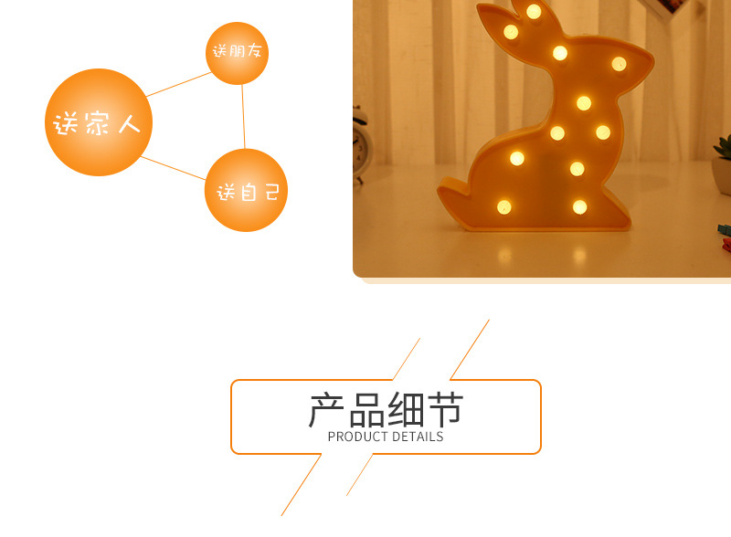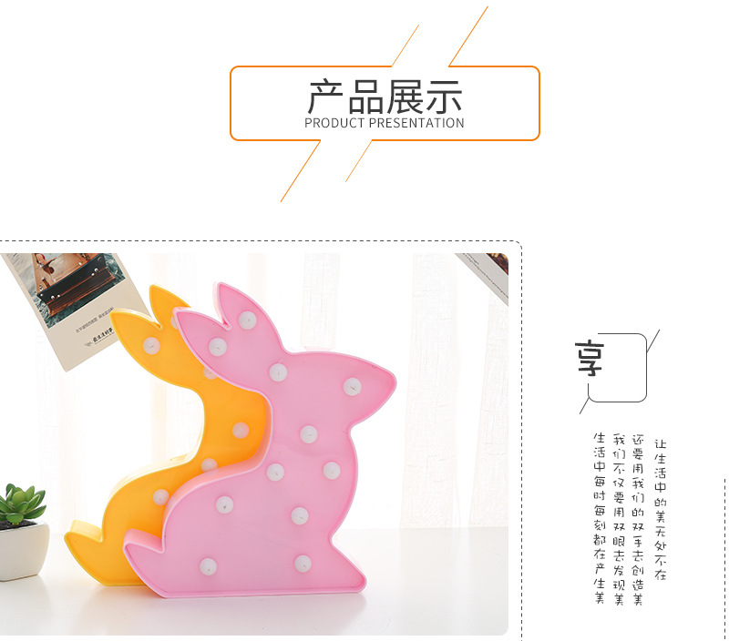 外贸专供韩式chic风月兔小夜灯 求婚告白装扮灯房间装饰3D立体灯