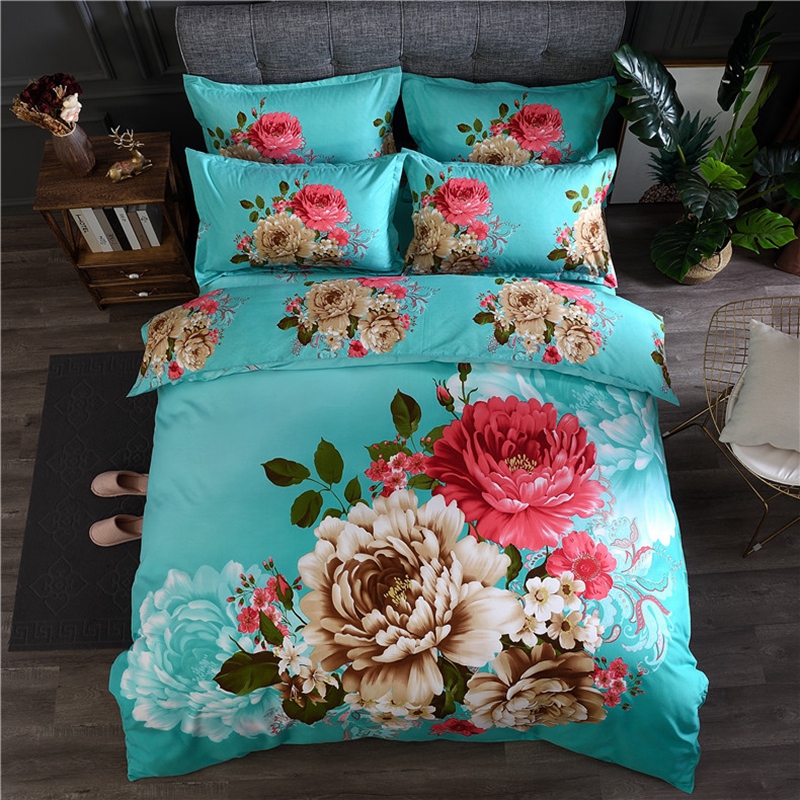 ywxuege时尚印花磨毛四件套 斜纹大版花磨毛床上用品套件