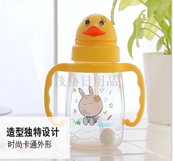 小淘气 卡通迷你小黄鸭水杯 带柄带吸管200ML儿童吸水壶AW-3