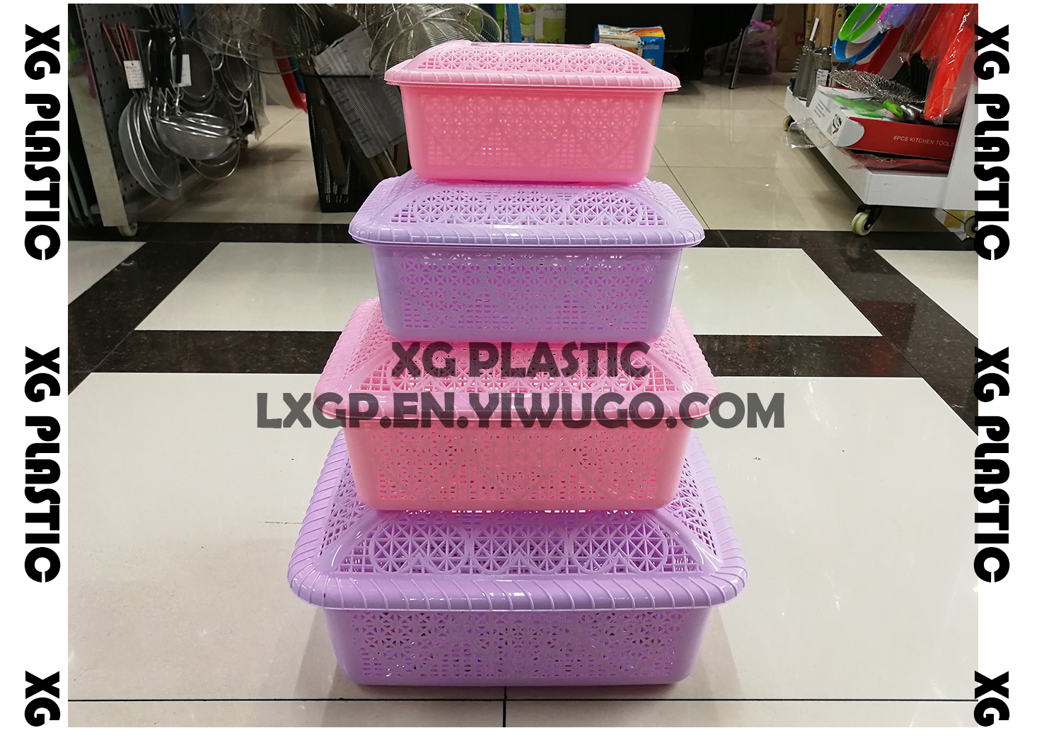 收纳篮带盖长方桌面镂空爱心置物篮零食化妆品塑料创意收纳盒