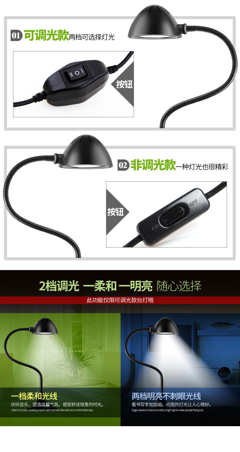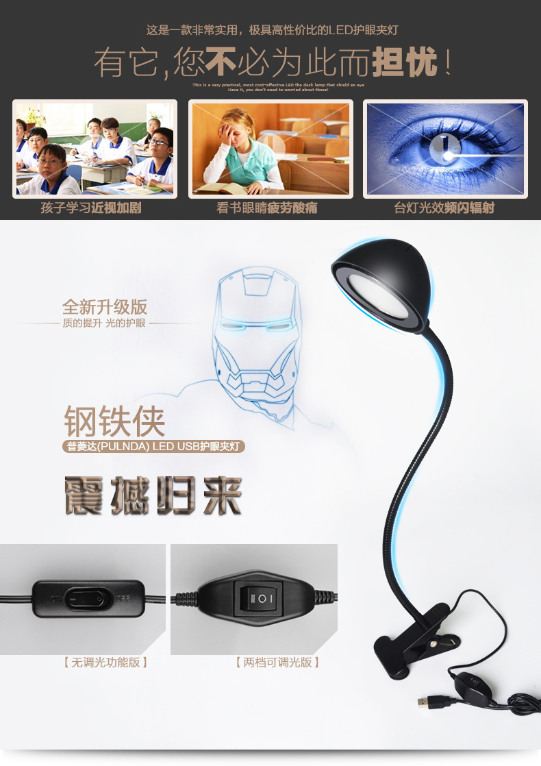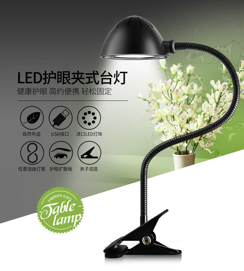 外贸专供黑色金属夹子灯 创意高亮护眼LED夹子台灯