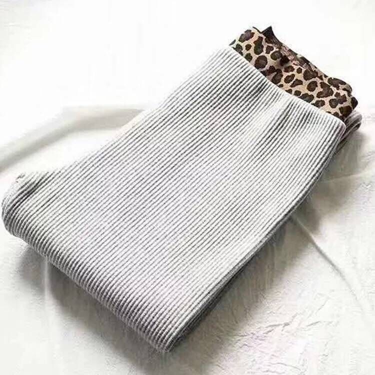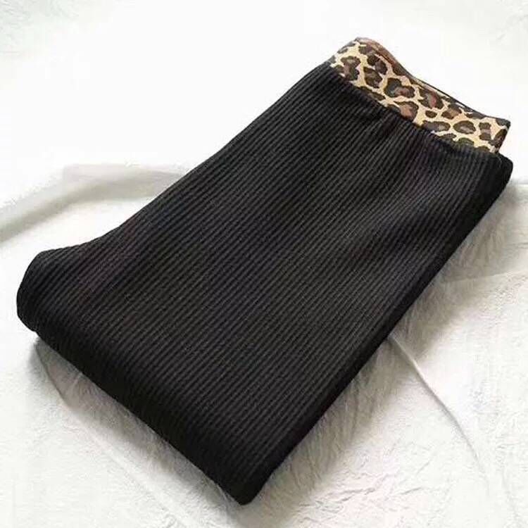 网红豹纹腰竖条螺纹棉打底裤外穿女薄款弹力修身韩版高腰九分裤春