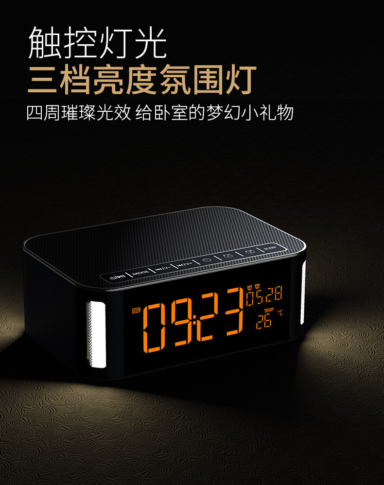 外贸专供触屏无线蓝牙音箱重低音炮闹钟收音机