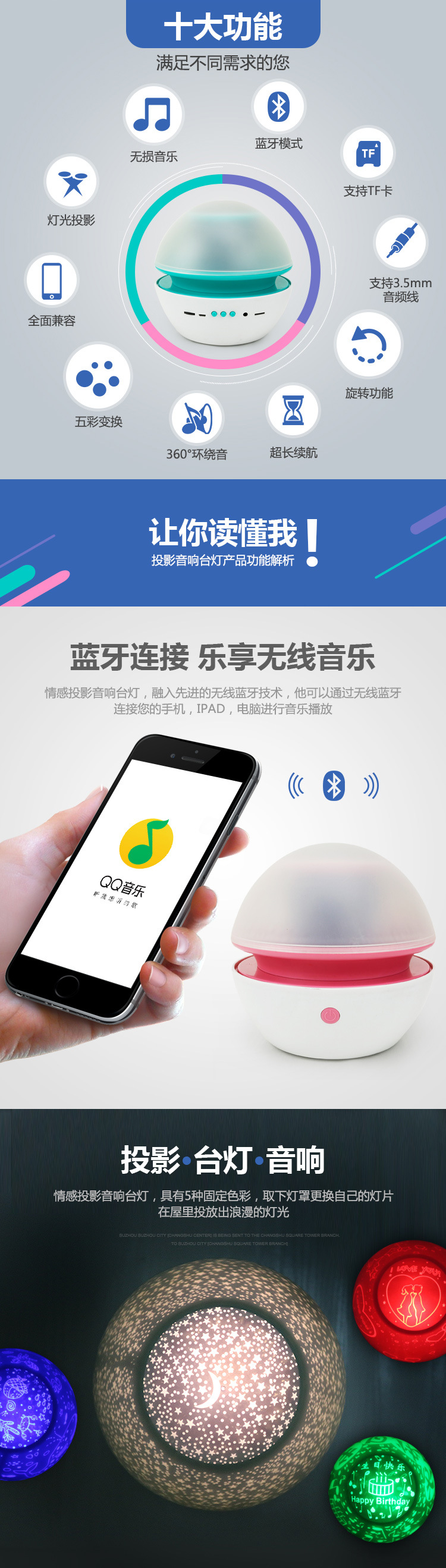 外贸专供创意插卡智能遥控蓝牙情感投影音响台灯