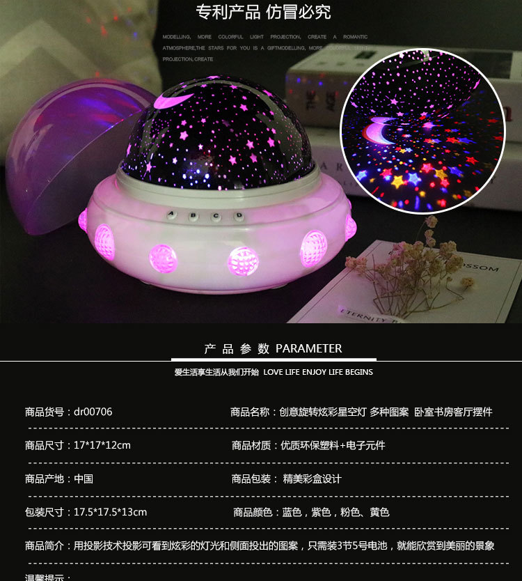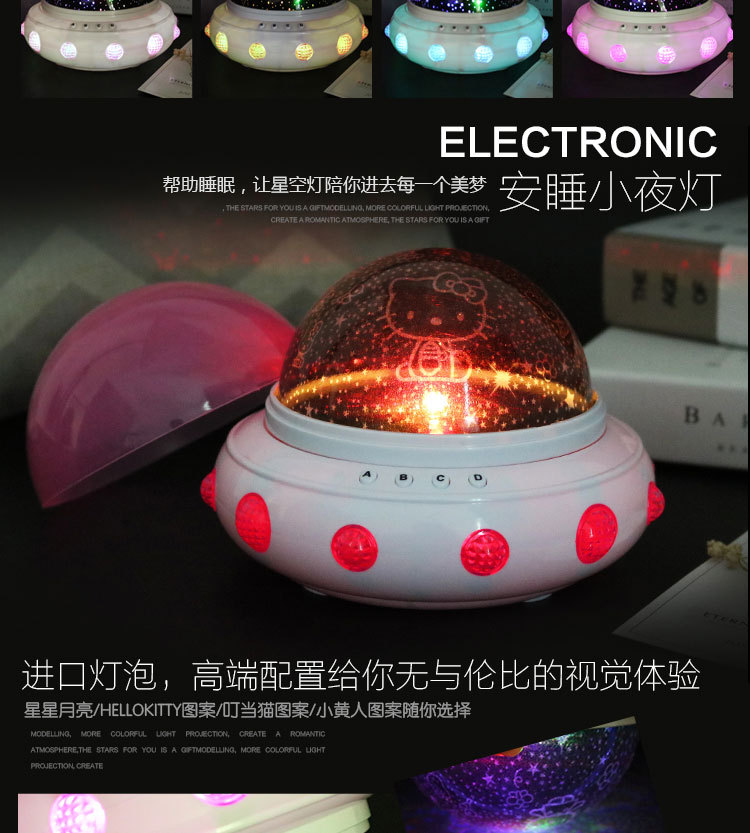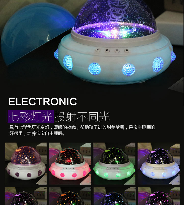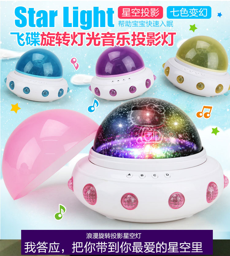 外贸专供飞碟旋转音乐星空灯儿童床头伴睡小夜灯星星月亮