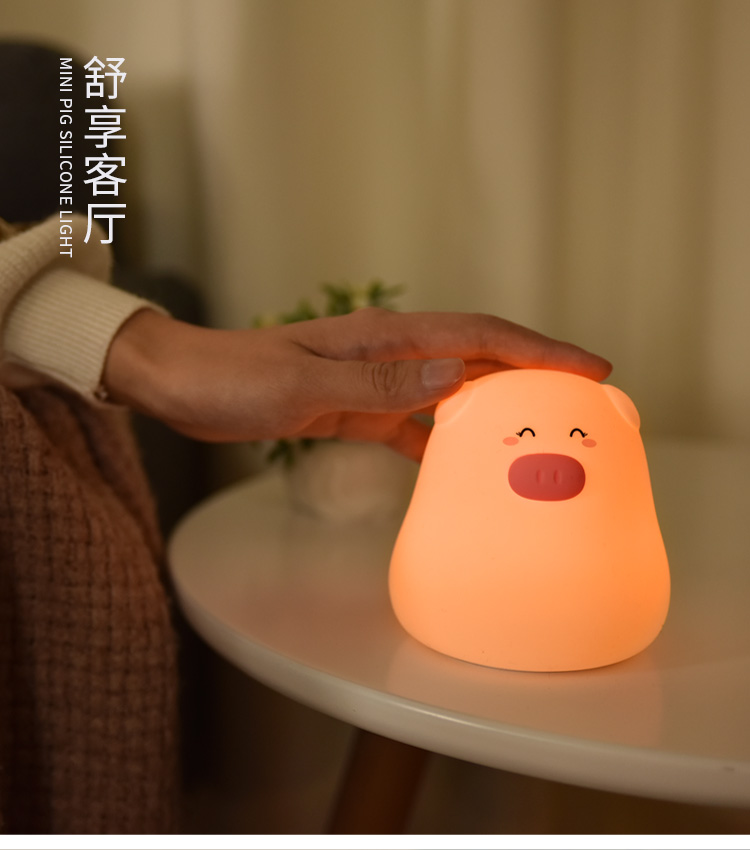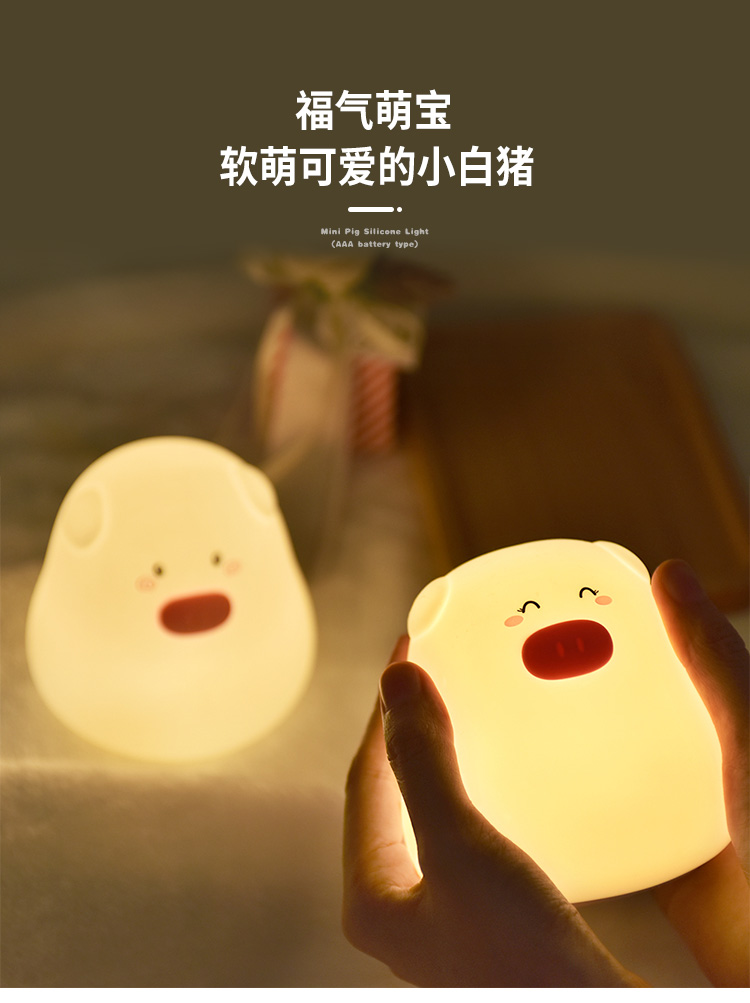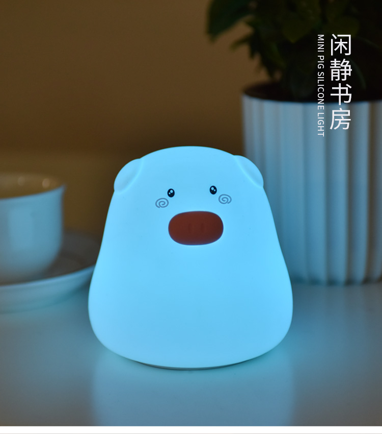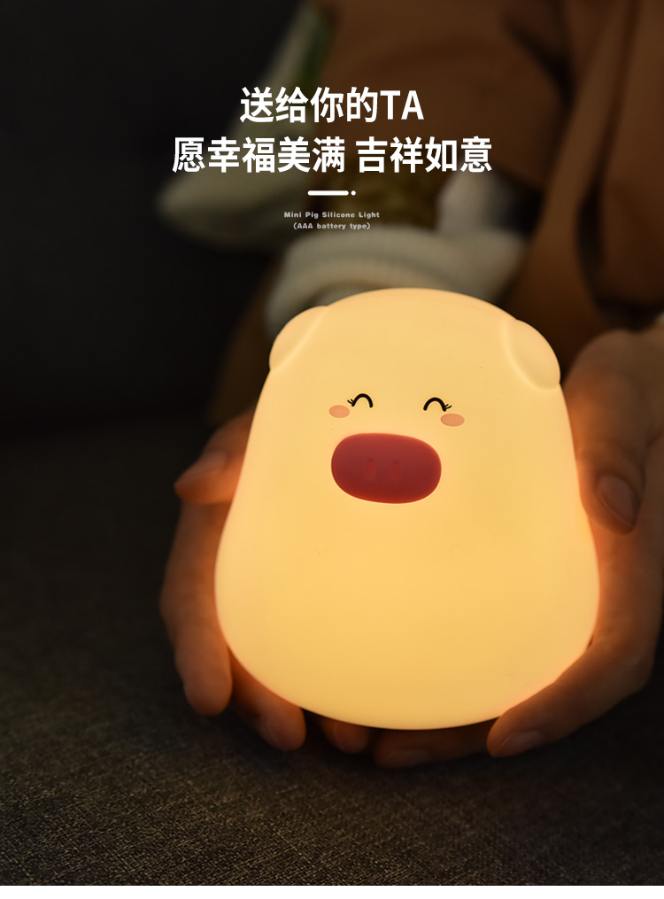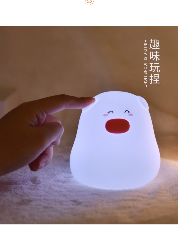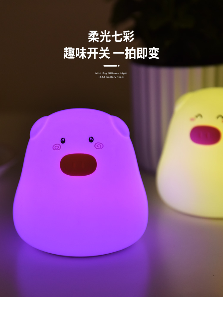 情人节礼物猪娃小白猪硅胶灯伴睡情感拍拍七彩夜灯起夜喂奶氛围灯