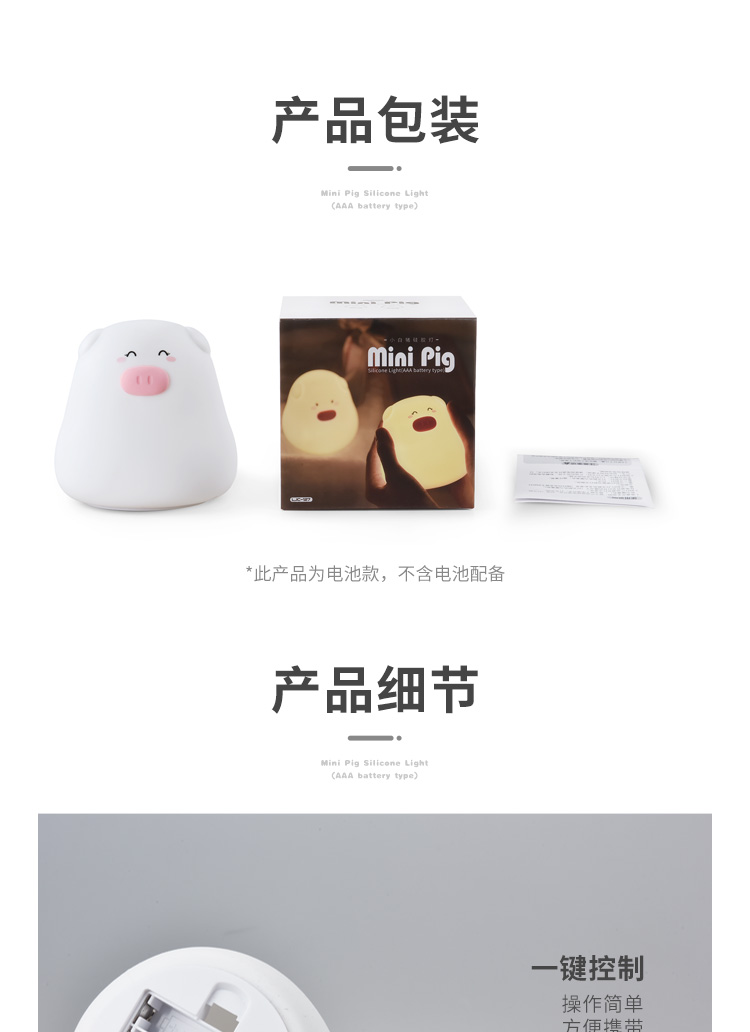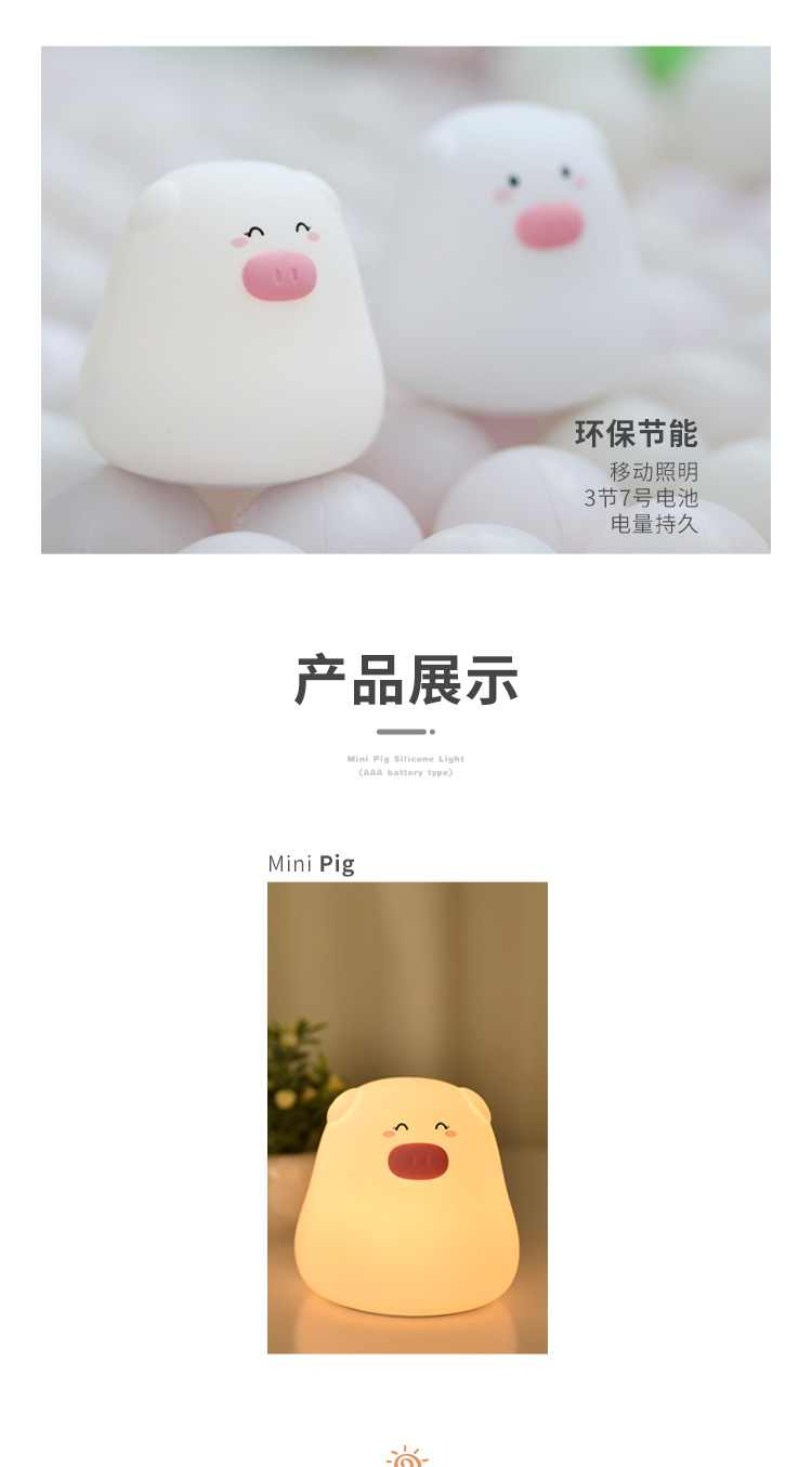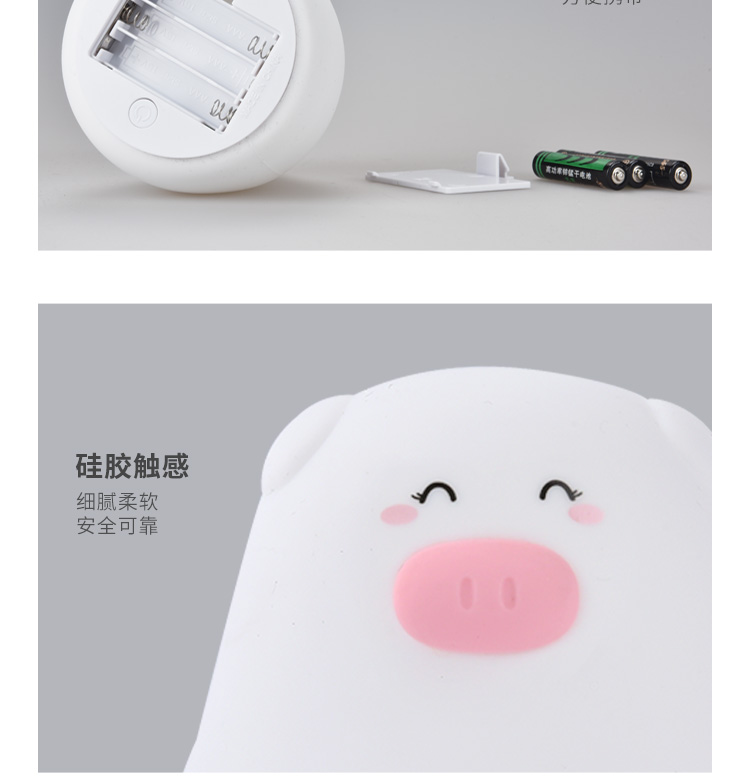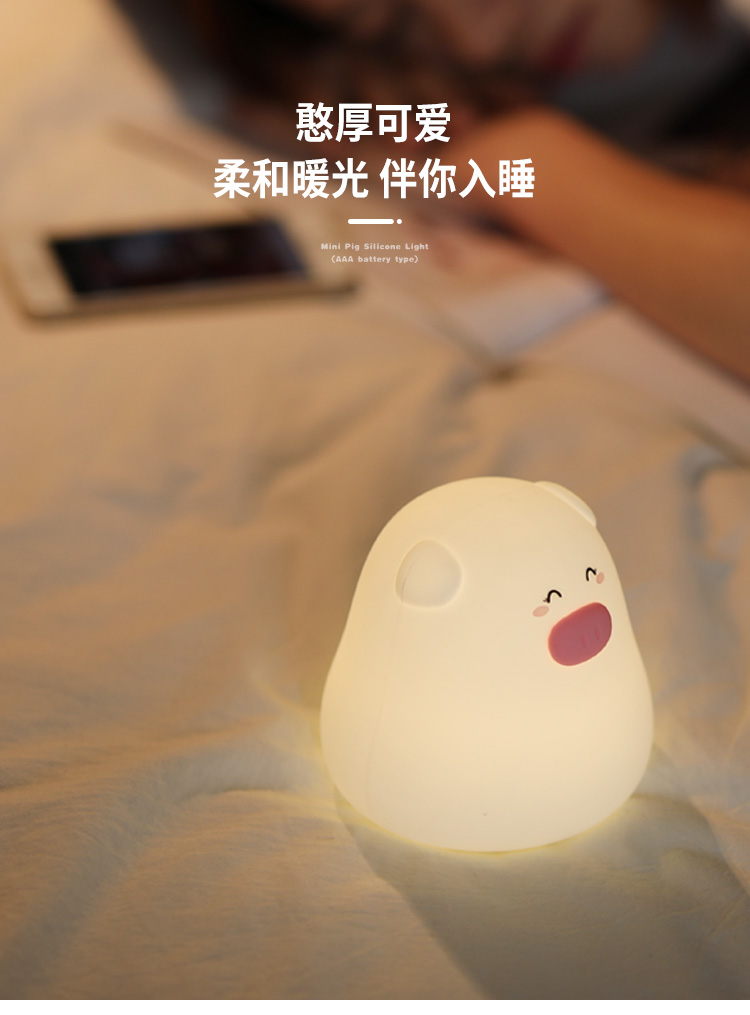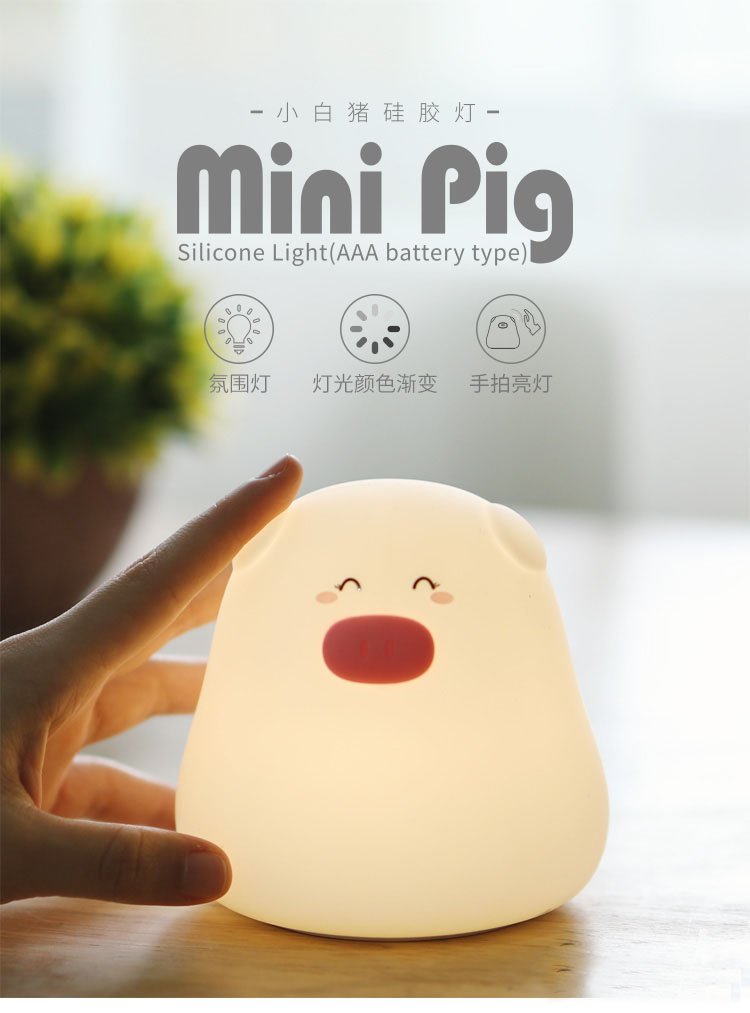 情人节礼物猪娃小白猪硅胶灯伴睡情感拍拍七彩夜灯起夜喂奶氛围灯