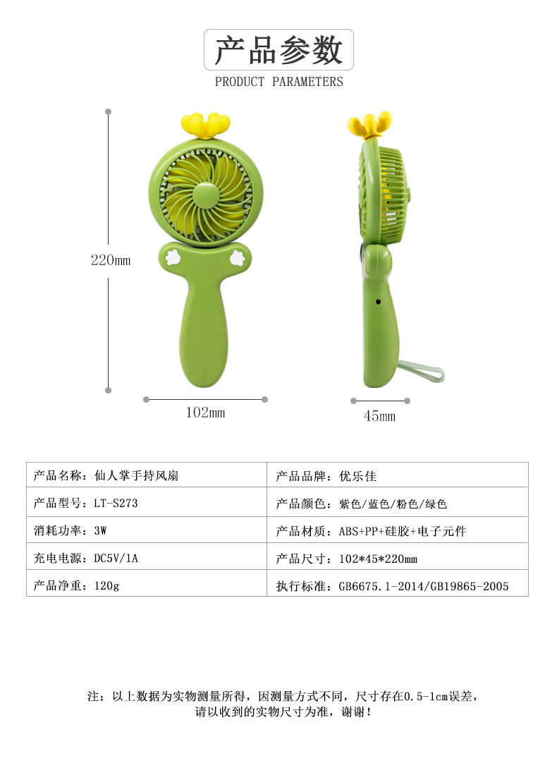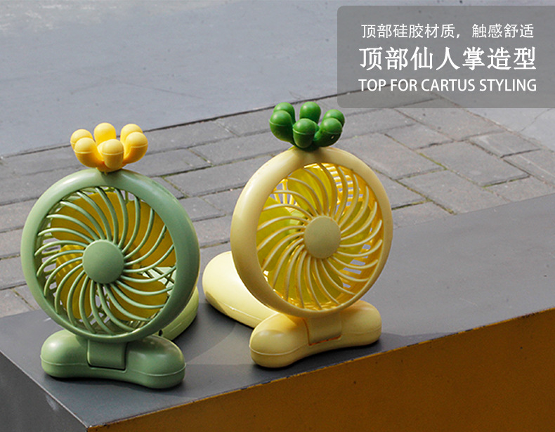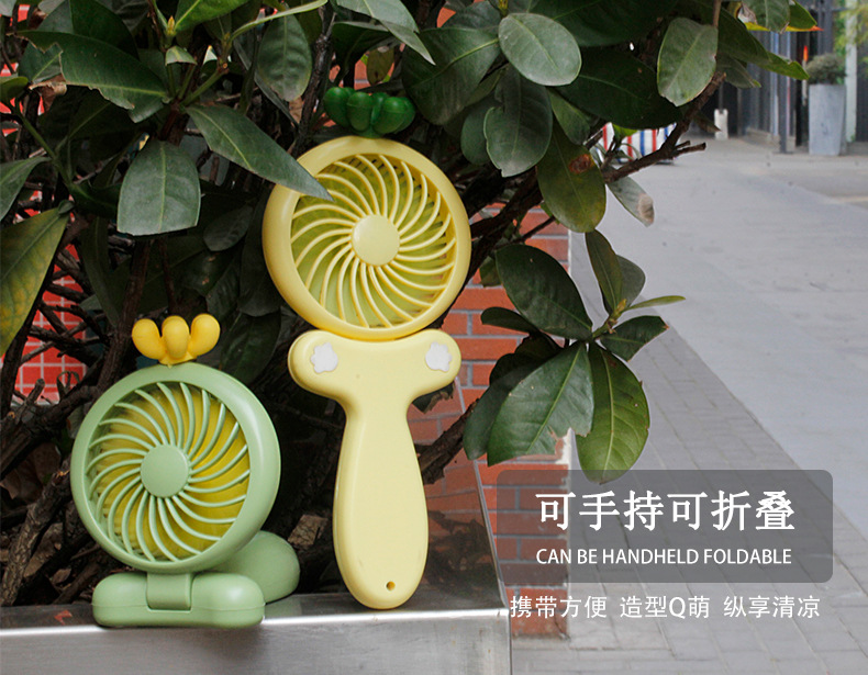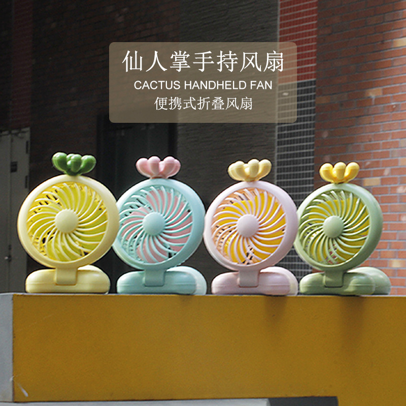 2019卡通植物仙人掌usb电扇折叠旋转坐立桌面充电手持旅行小风扇