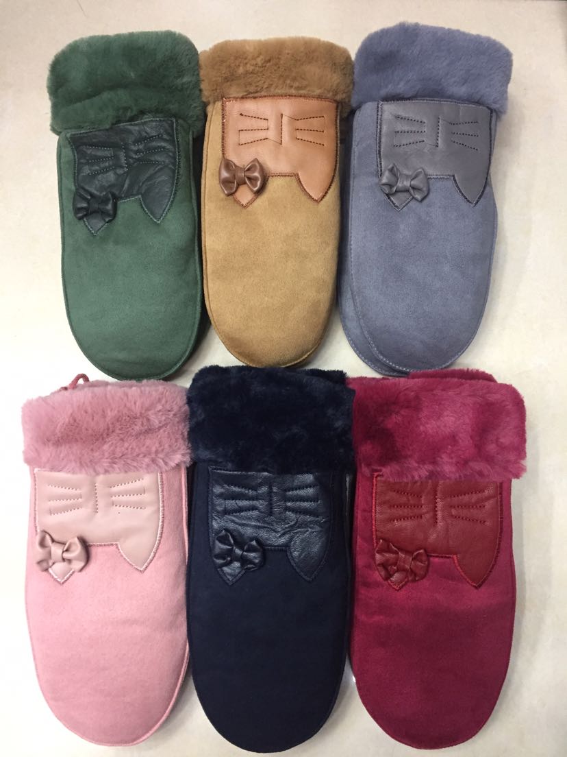 厂家直销新款冬季包指手套可爱卡通麂皮绒北极绒加厚小猫手套