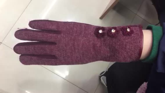 秋冬新款羊绒小花女触屏手套现货高档厂家直销