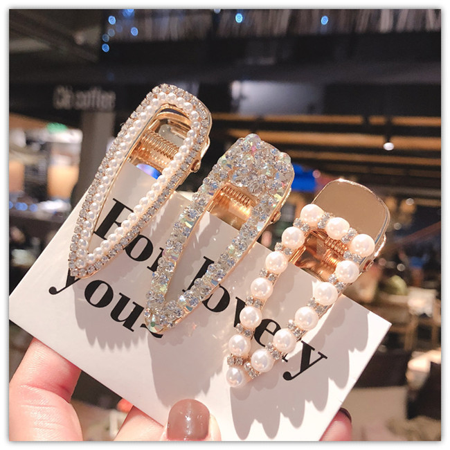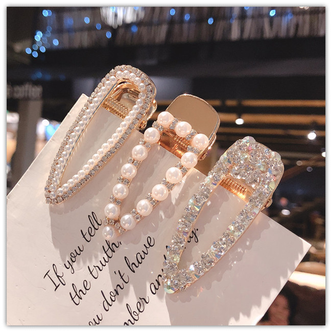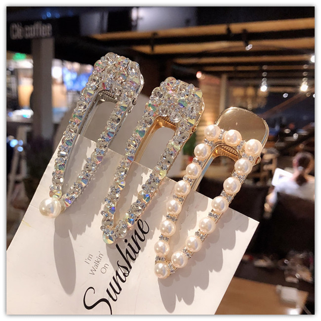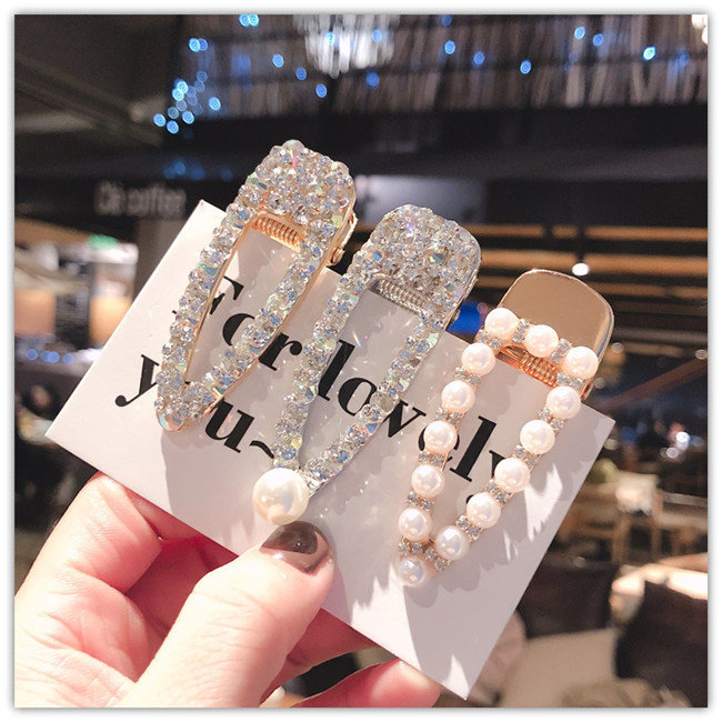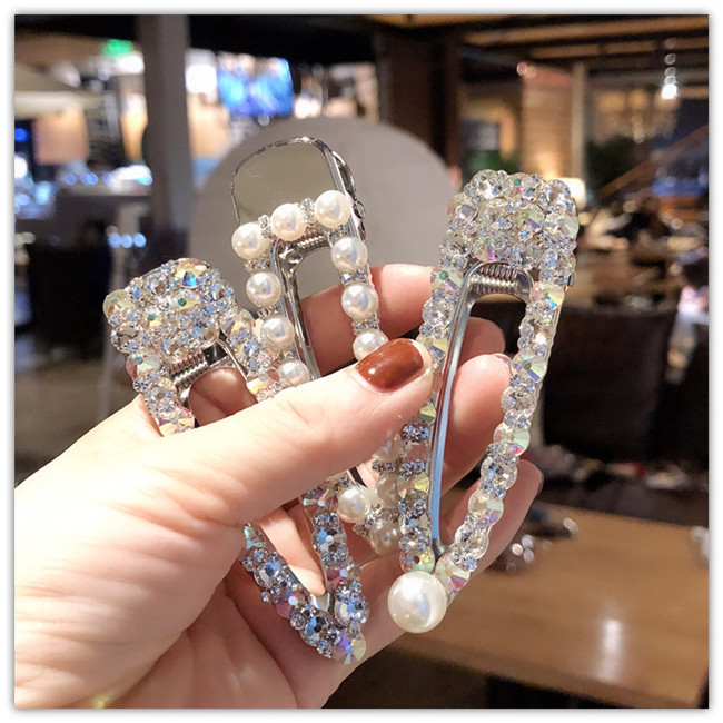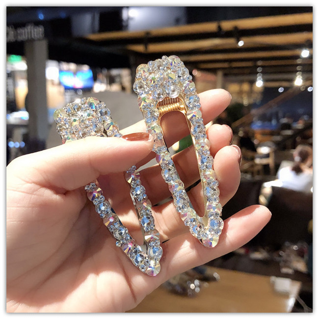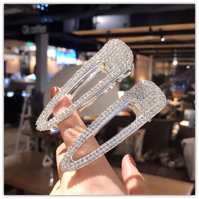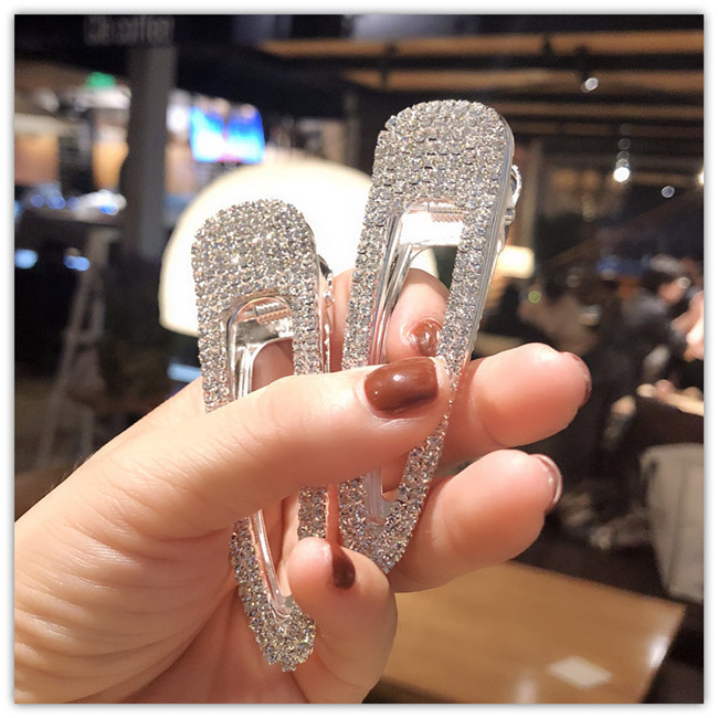 韩版新款 满钻超闪发 ins简约范满钻刘海夹 鸭嘴夹带钻碎发夹边夹