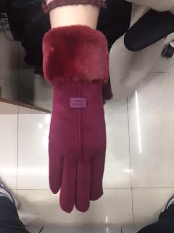 厂家直销新款麂皮绒加厚北极绒保暖触屏毛口手套时尚简约冬季手套